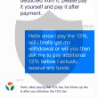 我尝试提款,但交易商冻结了我的账户并想要10%的预付款。我要求从交易中自动扣取他们的任何费用,但他们拒绝了并且没有提供任何帮助。能够收取足够的费用,他们说他们将处理付款。一周后,我联系了他们,他们说我需要支付13%的税,他们会在之后处理。之后我将不得不再支付 12%。这感觉像是一场骗局。我没有足够的资金继续支付这些“费用”,请帮忙。