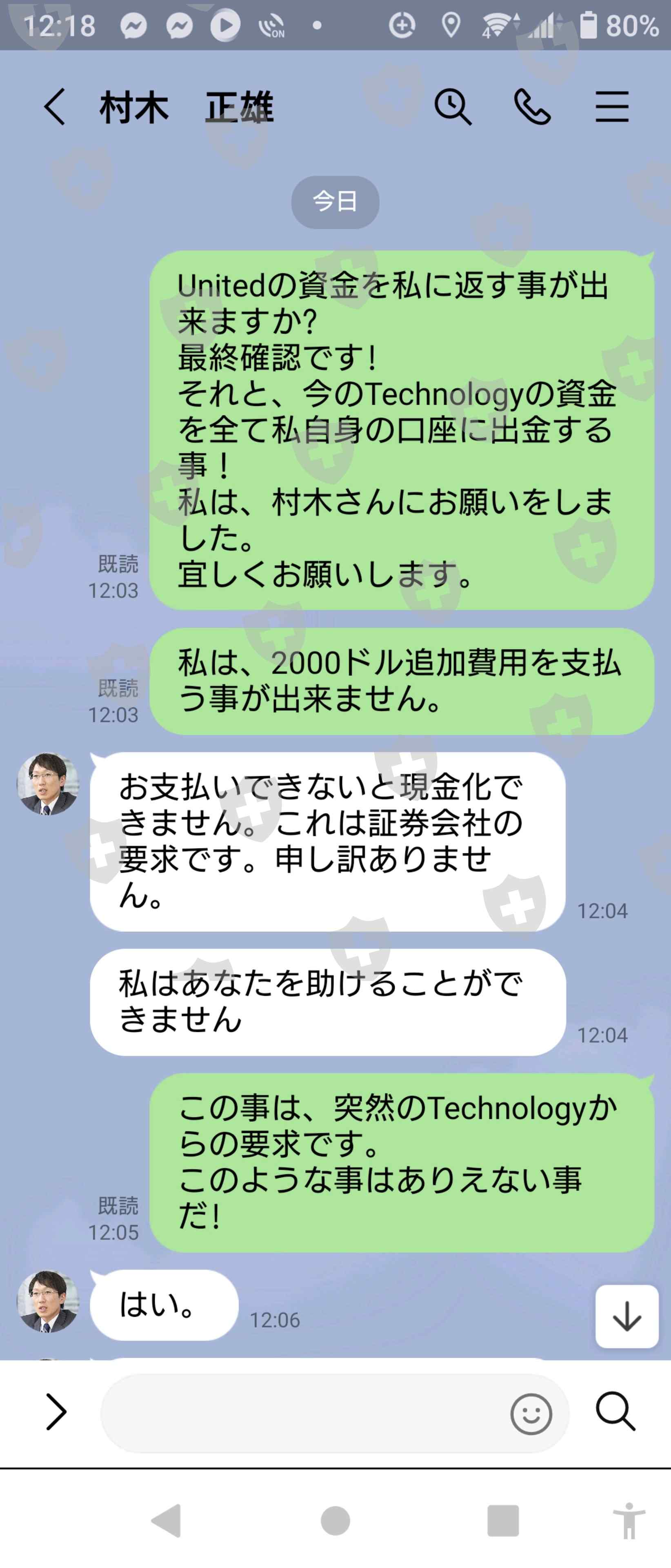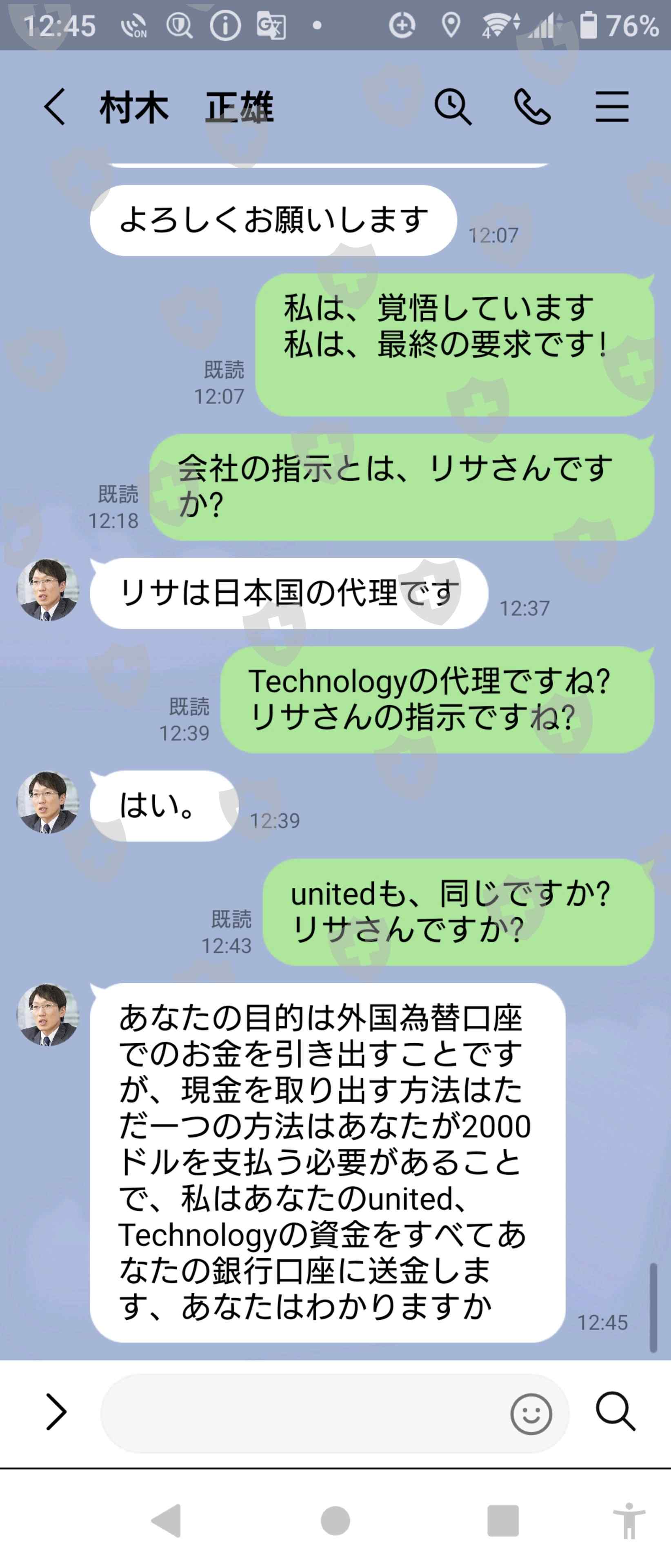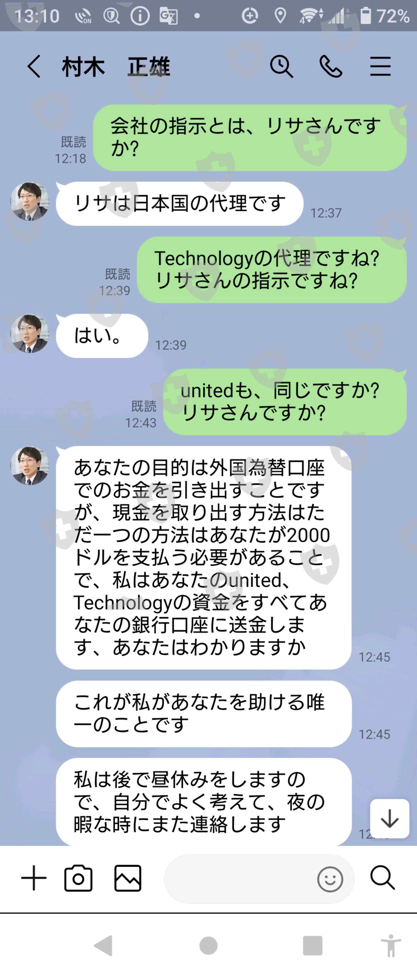 そうすれば、今、やっているTechnologyとunitedの資金を私自身の口座に振り込みすると言って来ました。