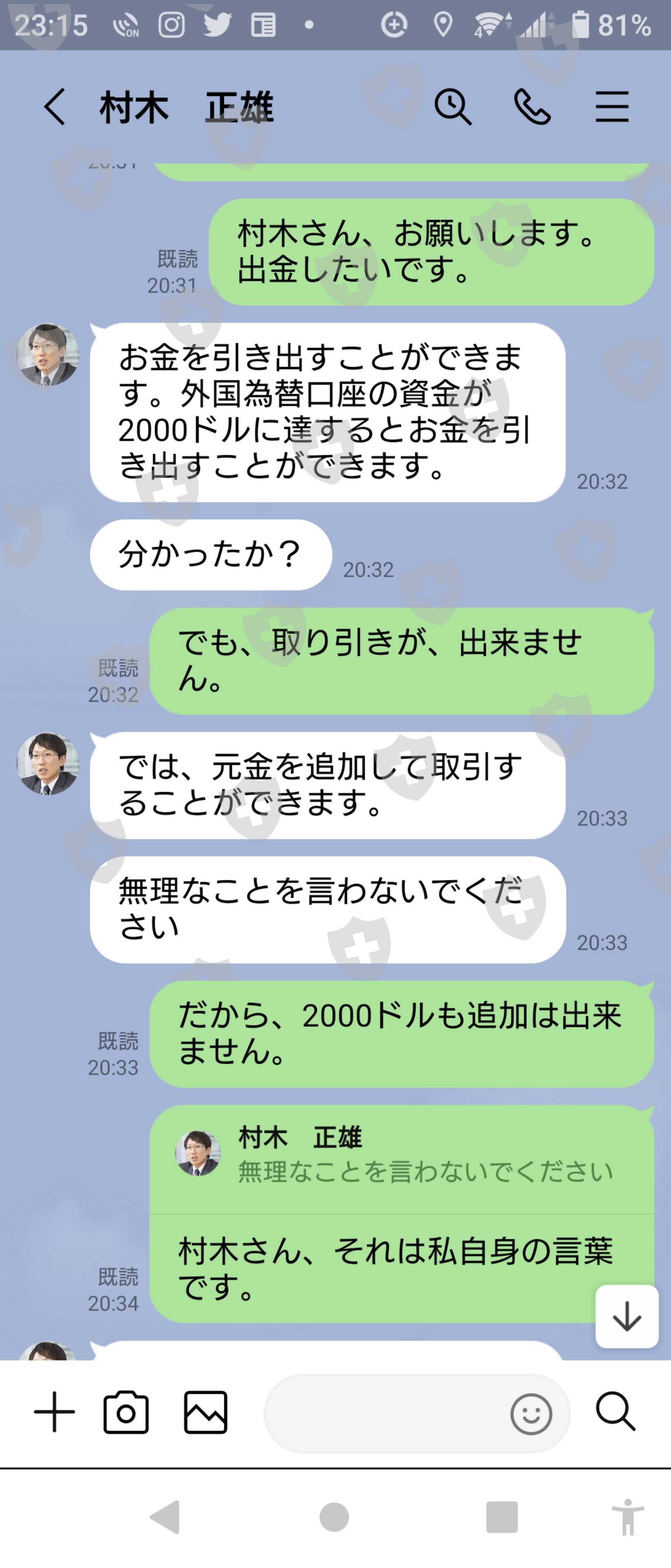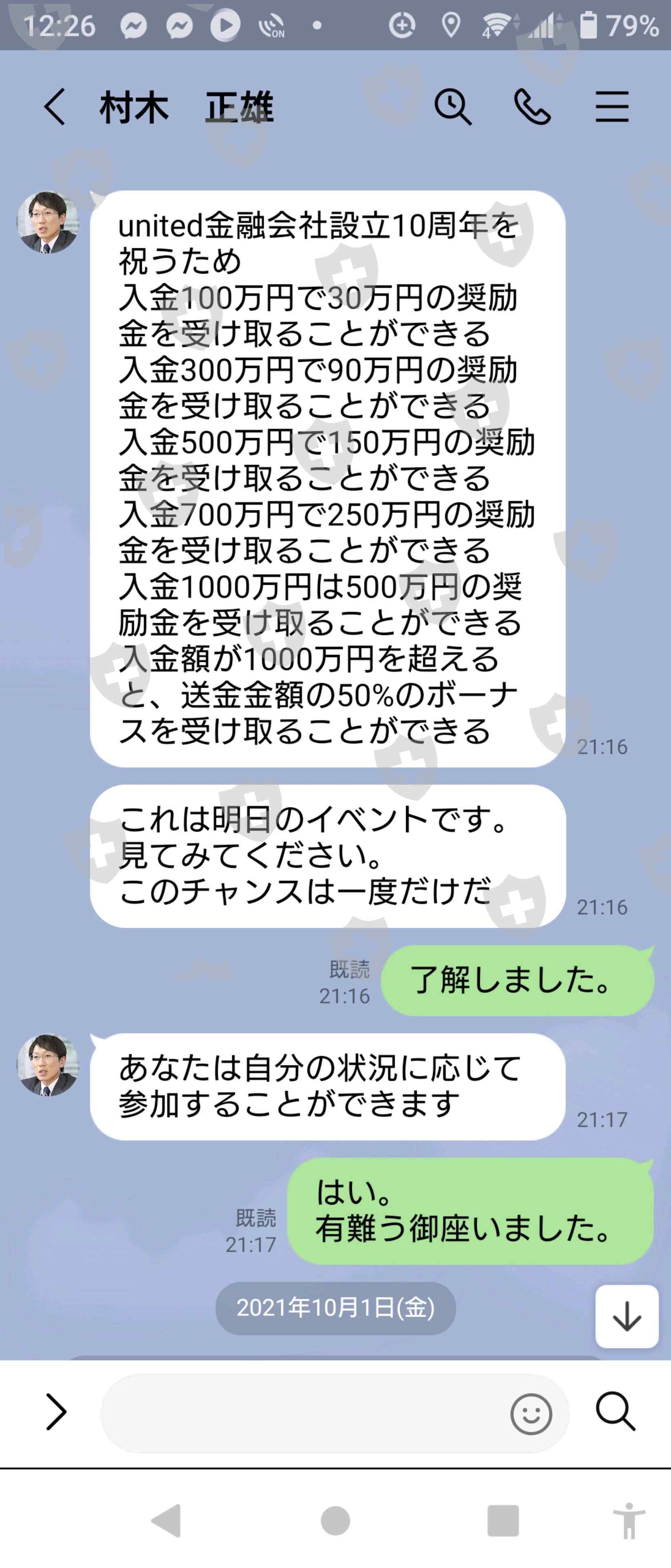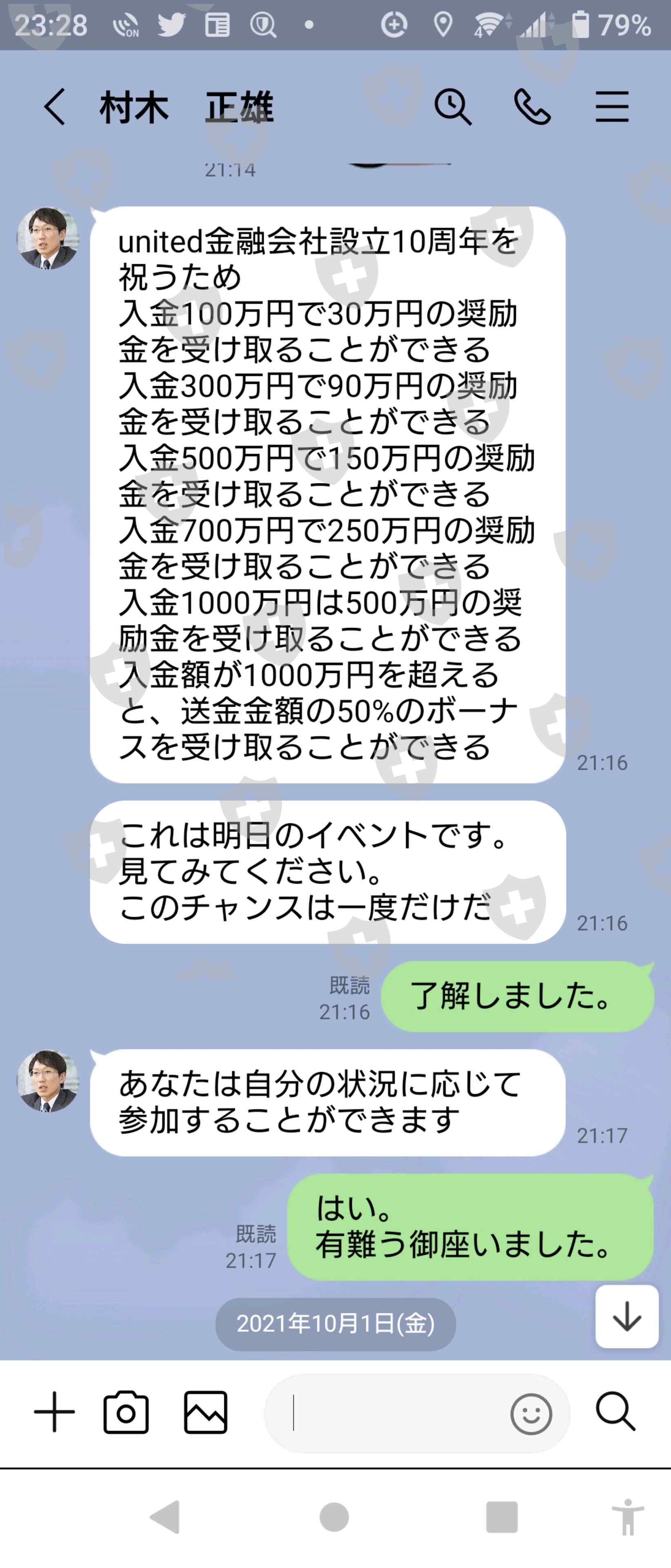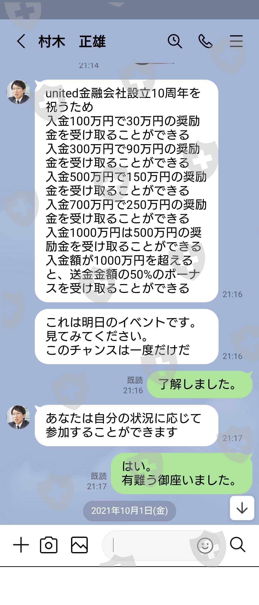 そうすれば、今、やっているTechnologyとunitedの資金を私自身の口座に振り込みすると言って来ました。