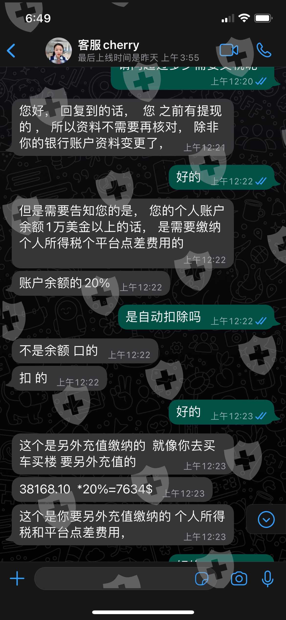 要支付個人所得稅才能提現 這肯定是為了詐騙才叫你多充值 詐騙網站