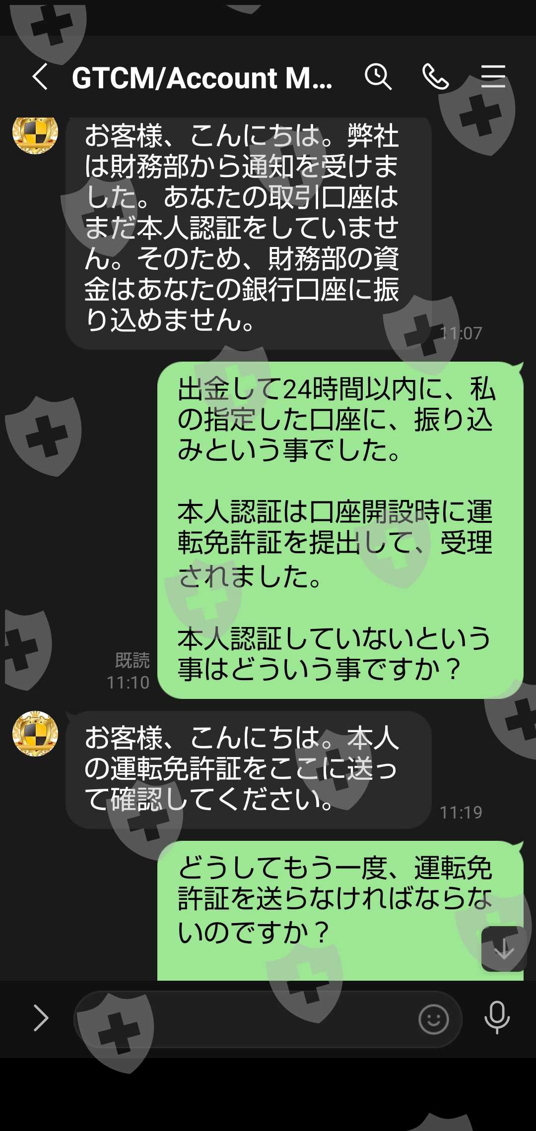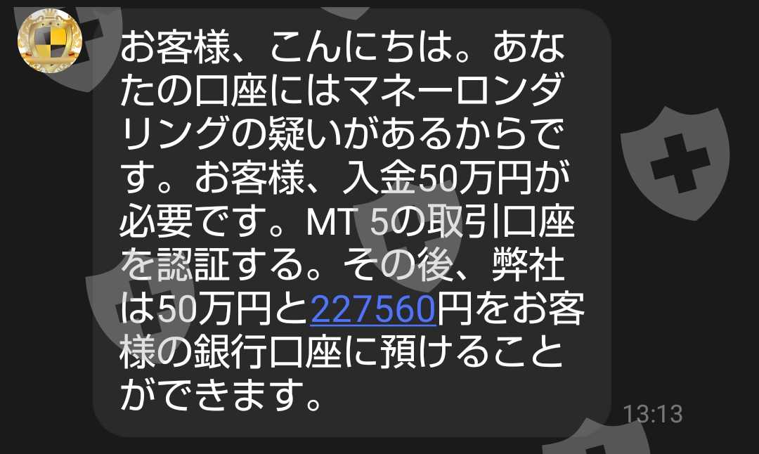 我们把227560日元汇给了三井住友银行冈川支店内桥博之。三天后,我申请提款并在LINE上提交了我的ID,但答案是除非我存入500,000日元,否则我不会退款,因为我涉嫌洗钱。涉嫌完全诈骗。要求退还您的押金。