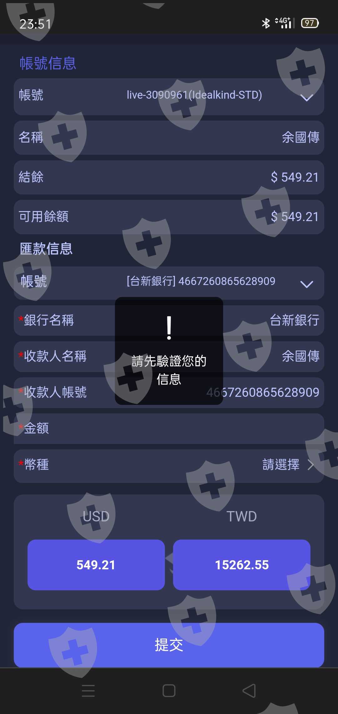 我是台灣的客戶申請出金已經7天,身份證也已經上傳。但是出金時卻都出現(請先驗證您的信息)