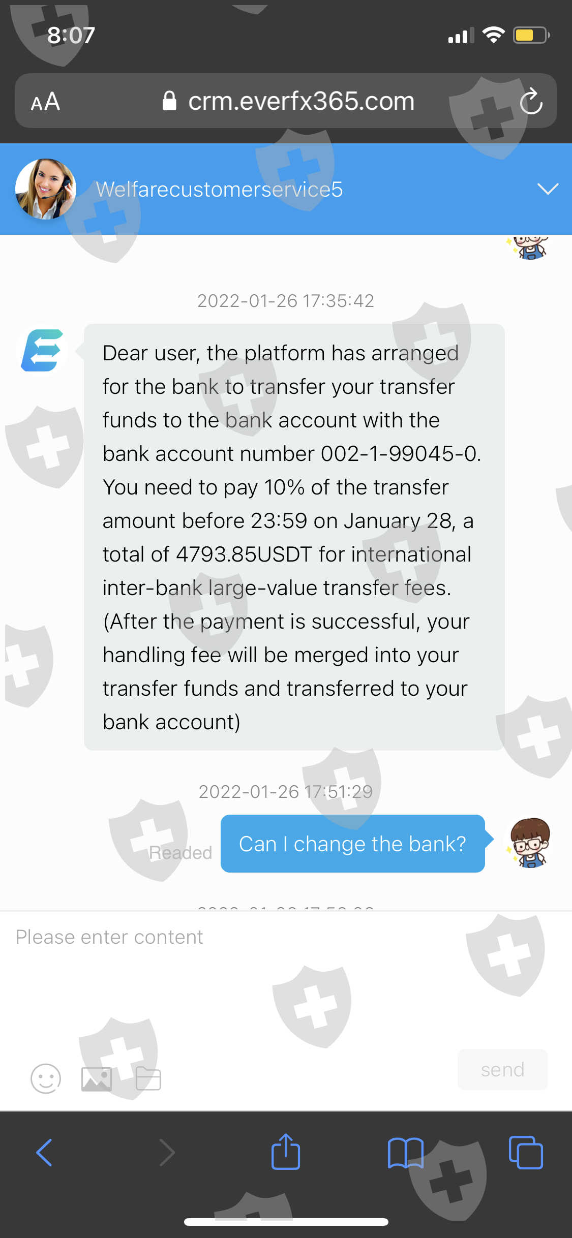 I want to withdraw all my funds which is 47132.00USDT but this time the broker charges a different fee, the first time is the leverage fee of 10%, amount 3942USDT. After that, they said I had to pay 12% personal income tax amount 5655.84USDT. Later they asked me to pay the transfer fee 10% of 4793.85USDT. I told them to deduct from my funds. They said cannot, only need to top up to be able to pay