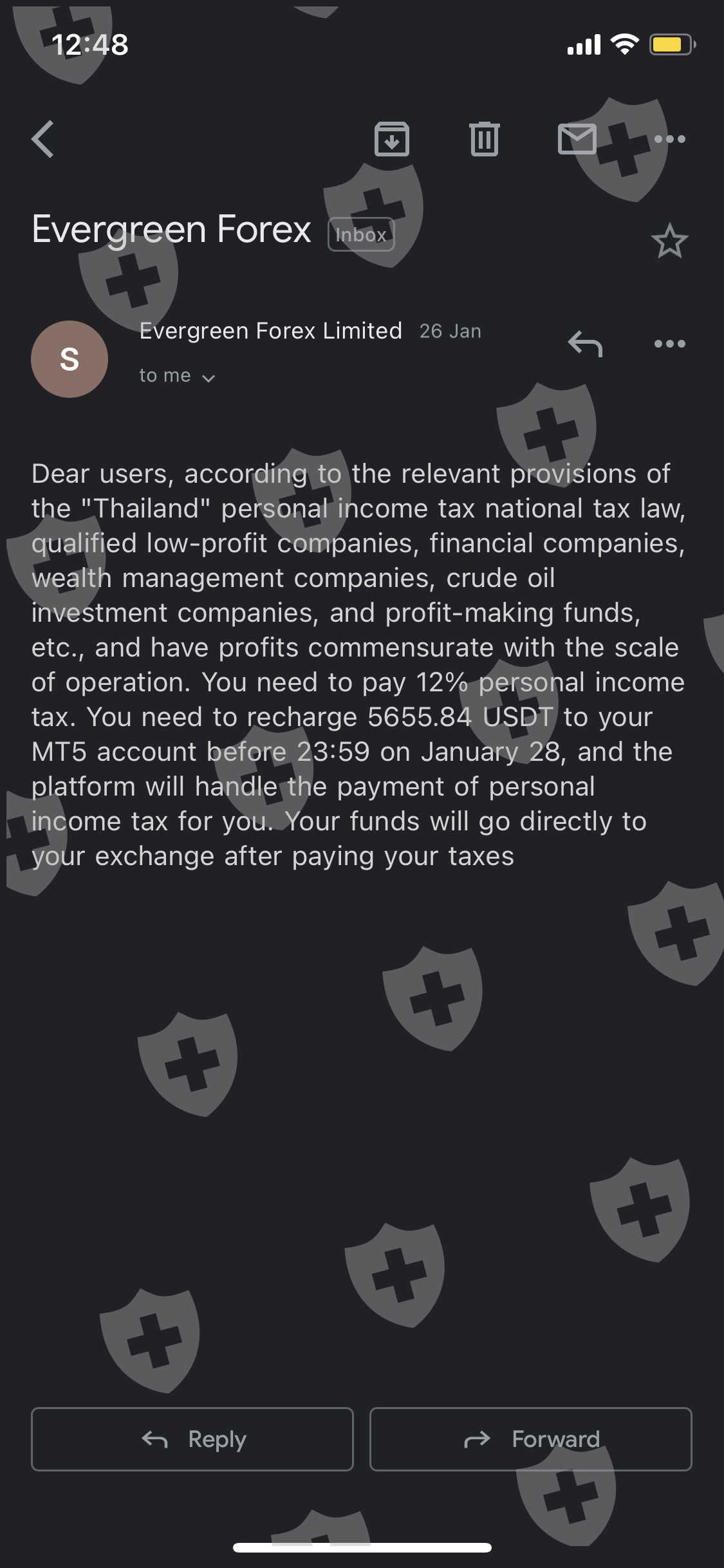 I am Thai. I want to withdraw all my funds which is 47132.00USDT but the broker charges a different fee, the first time is the leverage fee of 10%, amount 3942USDT. After that, they said I had to pay 12% personal income tax amount 5655.84USDT. Later they asked me to pay the transfer fee 10% of 4793.85USDT. I want to cancel withdrw but cannot do it, they told there are no reason, ask your bank ….