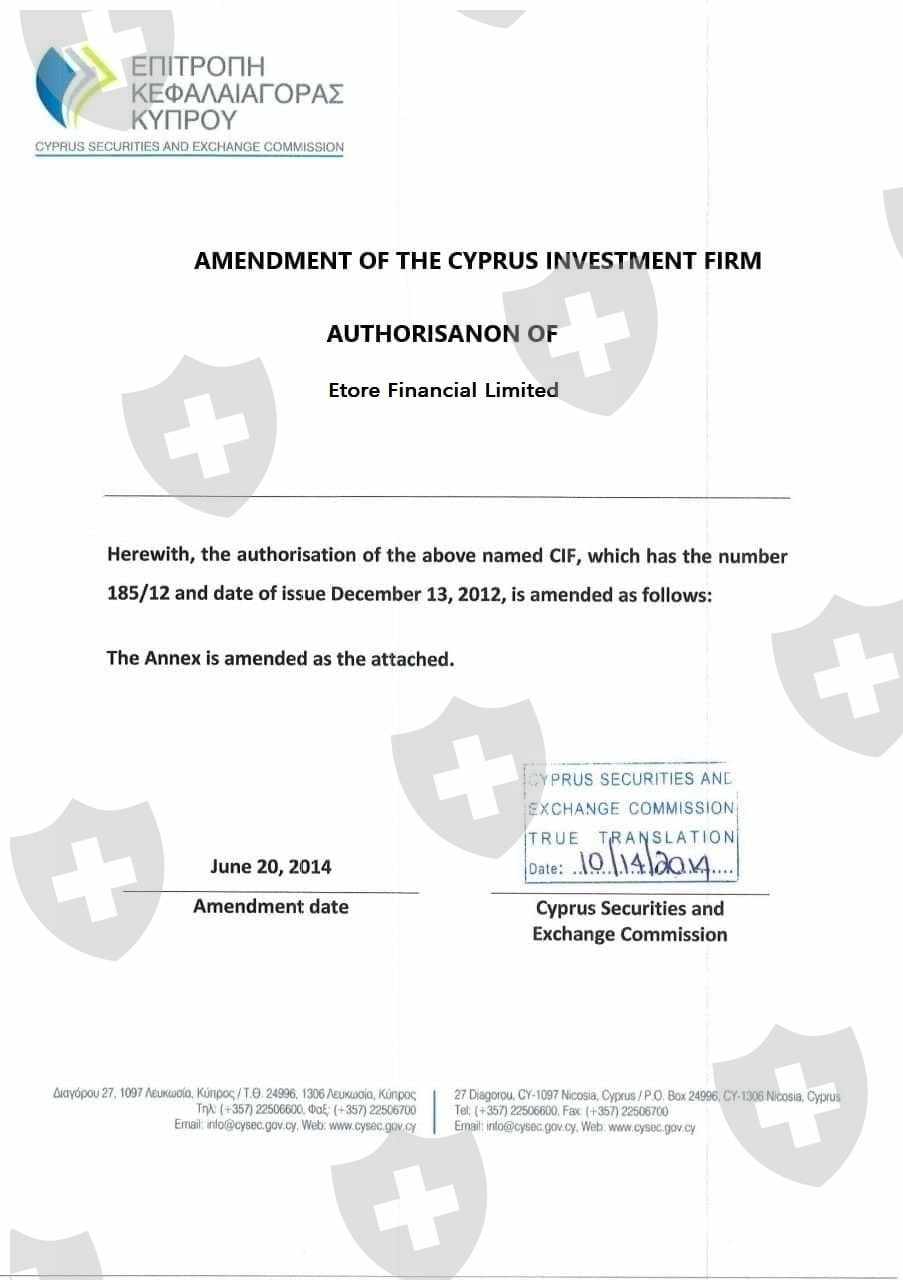 Everybody be aware of Etore Financial, Kianna, Alan and whoever is presumably working for Etore under MT5.I was asked to send them 2000 usd in order to approve my withdrawal. I also noticed the website provided at the begining is not available anymore and is keep changing the domain. I had several conversations with the so called admin, but he refused to approve the withdrawal. The attached license is fake, the number belongs to another company. I reported this issue to several authorities in charge with Forex Scamming.