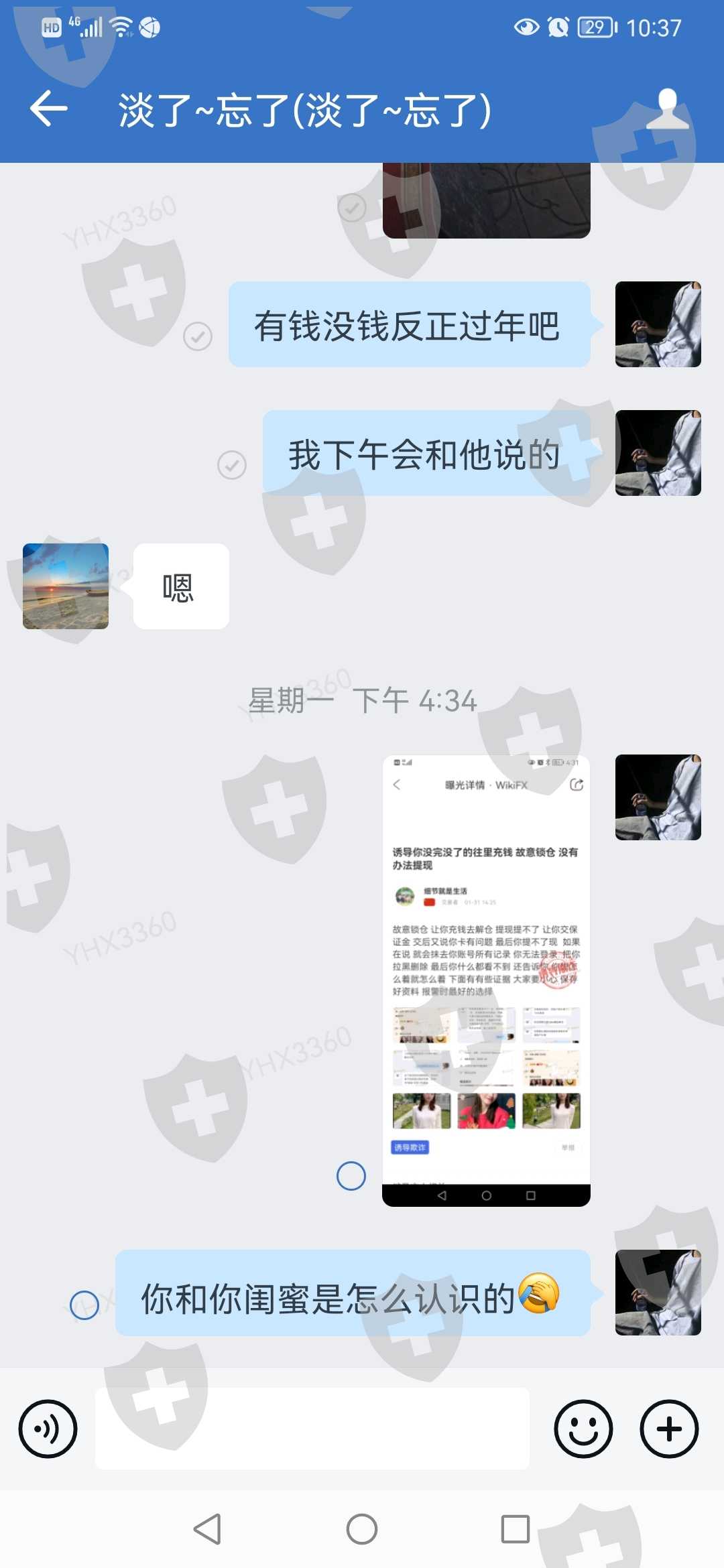 才发现以前的群里一大半是骗子同伙,骗你入金,骗你借钱加仓,骗你解仓,骗你交保证金能提现,说一堆人生大理想,细思极恐和她以前的聊天记录。 希望警察早日端了这个犯罪窝点一个活口也不留统统枪毙!!!