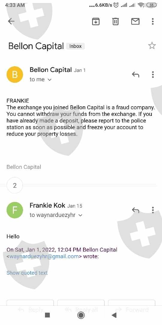 On 1 Jan 2022, I noticed the website not working, I had email company few times but no response at all. After few days, I noticed Bellon Capital Limited said their company is fraud company can't withdrawal the money in my spam mail. The amount money I have in Bellon Capital forex was USD37,147.78. I hope Bellon Capital Limited will refund my hard earning money back