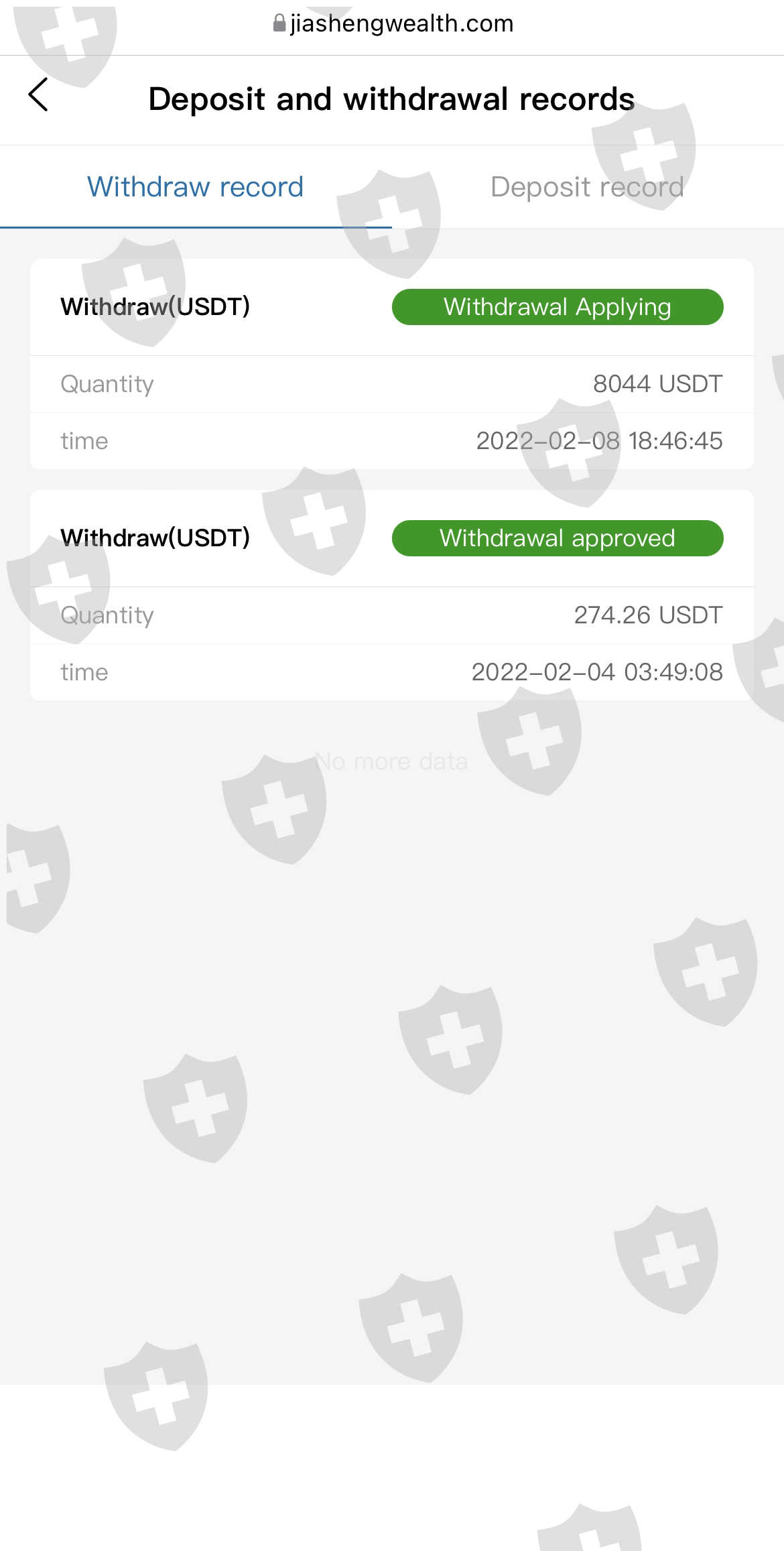 jiashengwealth unable to withdraw