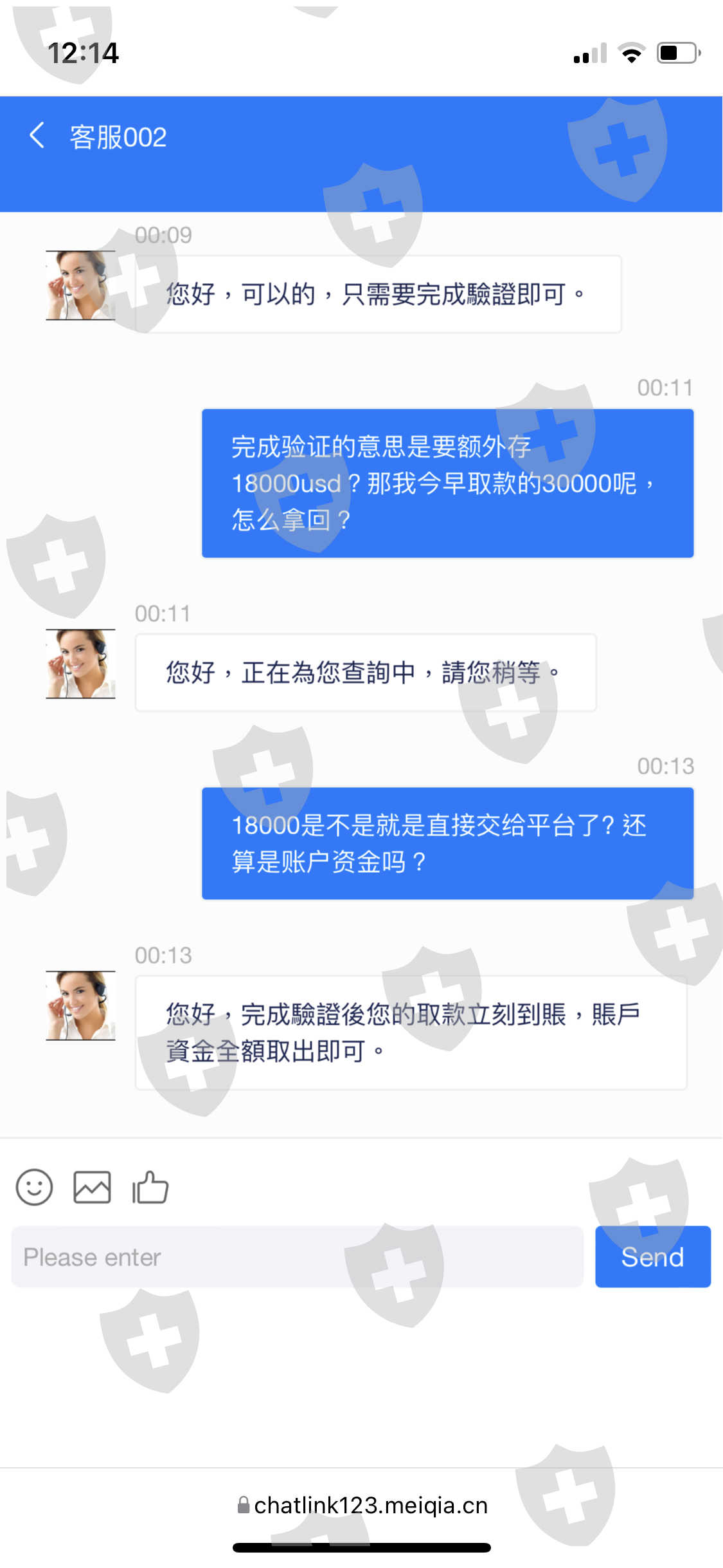 要求出金,金额虽已经从你账户扣除,可却永远不会到账,联系客服先是推脱到账平台审核有时差,随后发信称你涉嫌洗钱,要求限期内额外存入18000美元证明是你的帐户,否则你账户就无法动用,之前存入的数万美元资金就一分也别再想取出了. 再次联系客服,就永远是忙碌状态了