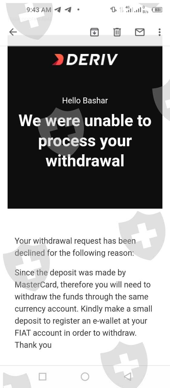 Deriv是一个可疑的骗局。我们不建议与他们进行交易。如果你已经在Deriv我们建议你立即停止存入任何资金,我已经存入资金并继续交易,但当我申请提款时,他们只是无缘无故拒绝我的提款请求!