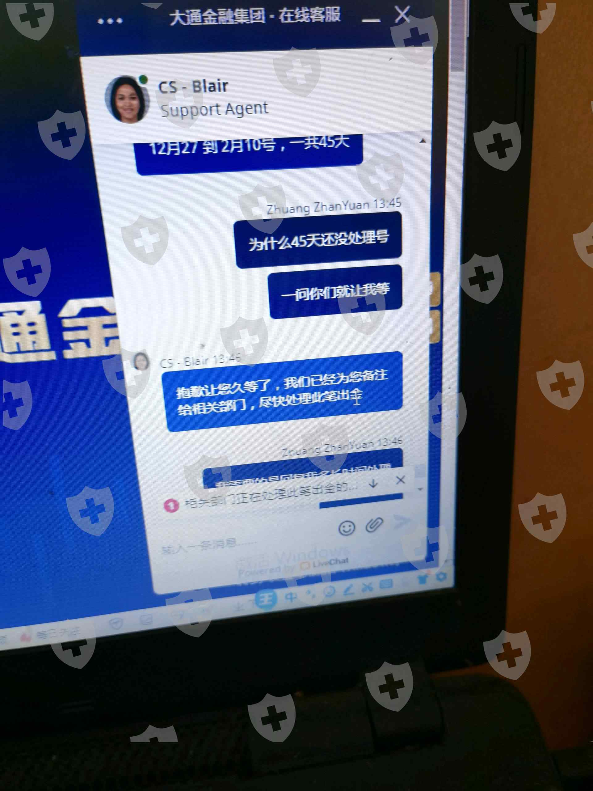 12月27号出金到现在没有结果,一问客服就是让我等,就说尽快,整整45天就回复尽快