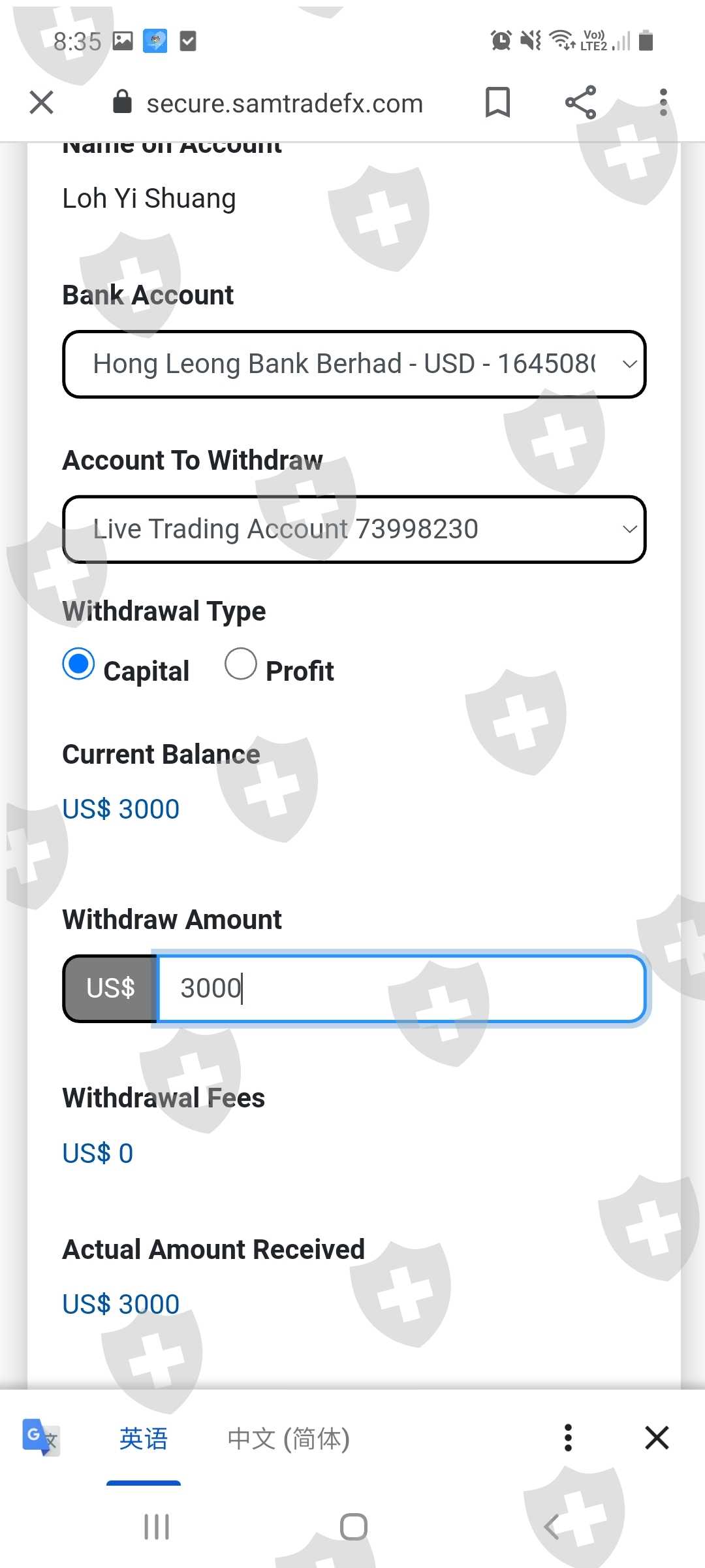 从1月3日开始事情发生到现在,交易商没有解释交易者的资金是否安全,调查多久,何时可以出金,1年?永久?直到mt4平台终止合作,出金甚至内部转移更加困难,我只需要拿回我的本金,3000美金。我里面有3000美金的资金,却告诉我没有任何资金,无法出金。