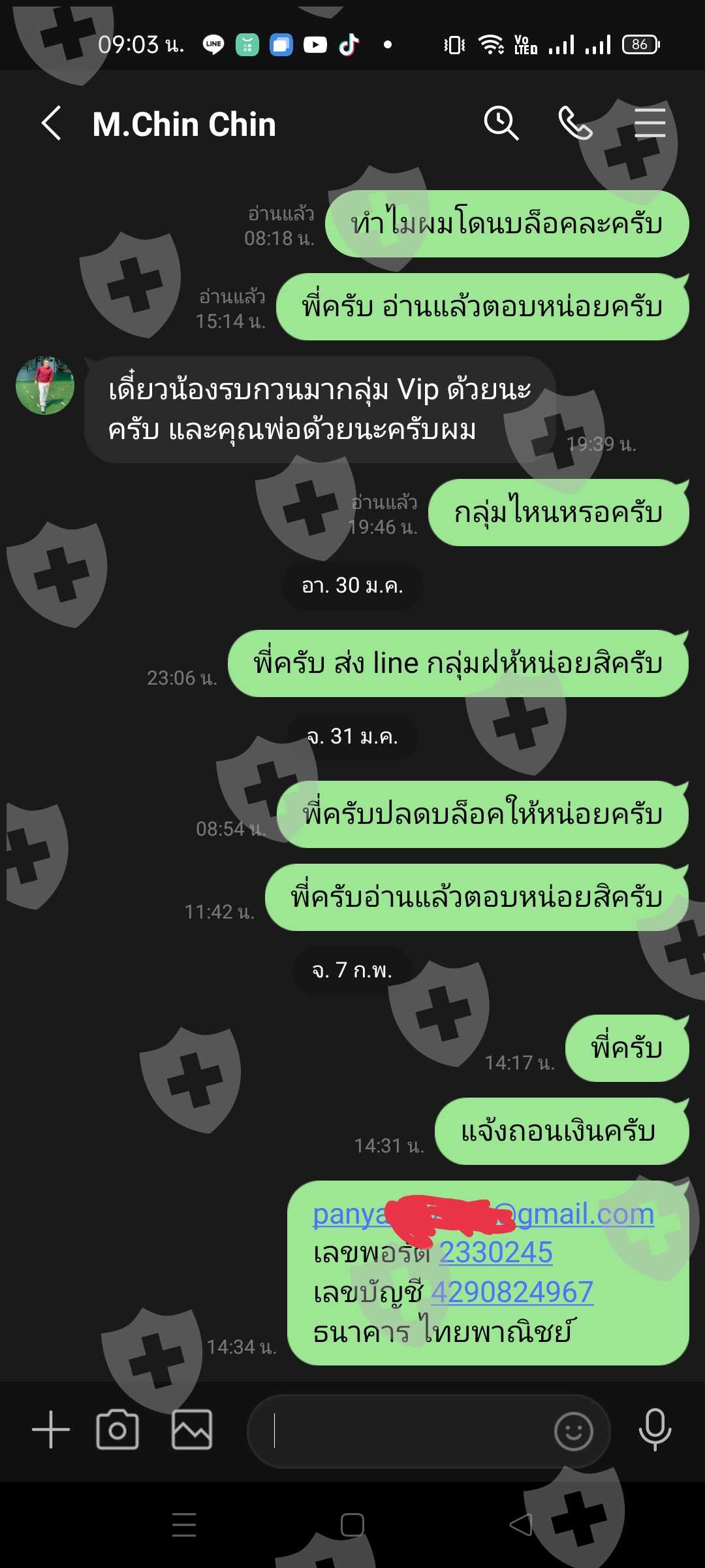 ทำการฝากเงินเพื่อลงทุนกับทาง Vipotor ผ่านแอดมิน และเนื่องจากเราโดนบล็อคกลุ่ม เราเลยติดต่อแอดมินคนนั้น แล้วทำเรื่องถอนเงิน แต่ทางแอดมินไม่มีการตอบกลับ ตั้งแต่วันที่ 30/01/2565 จนถึง 10/02/2565