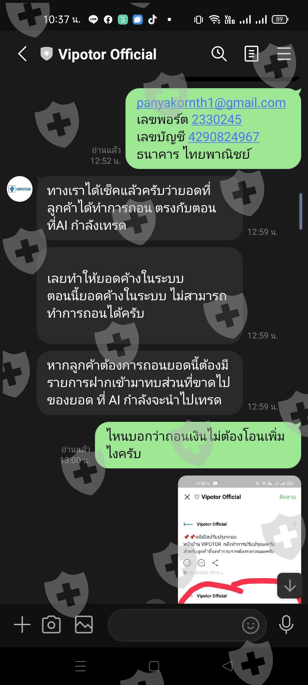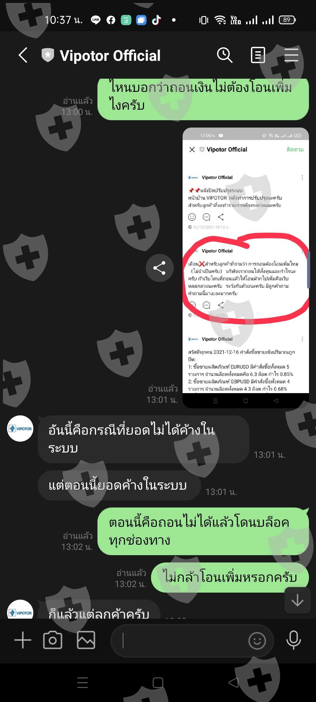 แจ้งเรื่องถอนเงินกับทางแอดมิน แอดมินบอกเงินค้างในระบบ ให้โอนเงินเพิ่ม เพื่อที่จะถอน แต่ทางโพสของแอดมินบอกว่า การถอนเงินไม่ต้องฝากเพิ่ม สรุป โดนโกง 100%