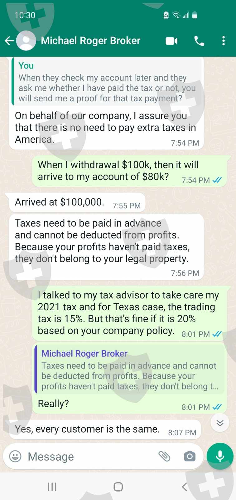 我从迈克尔·罗杰 (+44 7865 708491) 那里知道这家公司。他的公司最初是Sushi Global投资,然后在 12 月,根据他的信息,该公司与mkndyltd (www.mkndyltd.com) 合并。自 2021 年 10 月下旬以来,我与他使用meta Trader 5进行外汇交易,总共投资了 51,650 美元(通过几次电汇)。直到 2022 年 1 月中旬,我的账户中有 239,795.17 美元(投资和利润)。当我想提取利润时,他要求我提前缴纳税款。这不对。在多次坚持要他关闭我的帐户后,他完全从Whatsapp对话中消失了。这是我人生中的一个大错误。我信任了错误的人和公司。所以,要小心。 www.mkndyltd.com 网站仍然有效并且看起来合法。但他们是骗子。他们不是 FCA(英格兰)或 NFA(美国)的成员。我已经向美国的执法部门和 CFTC 报告了这种欺诈行为。