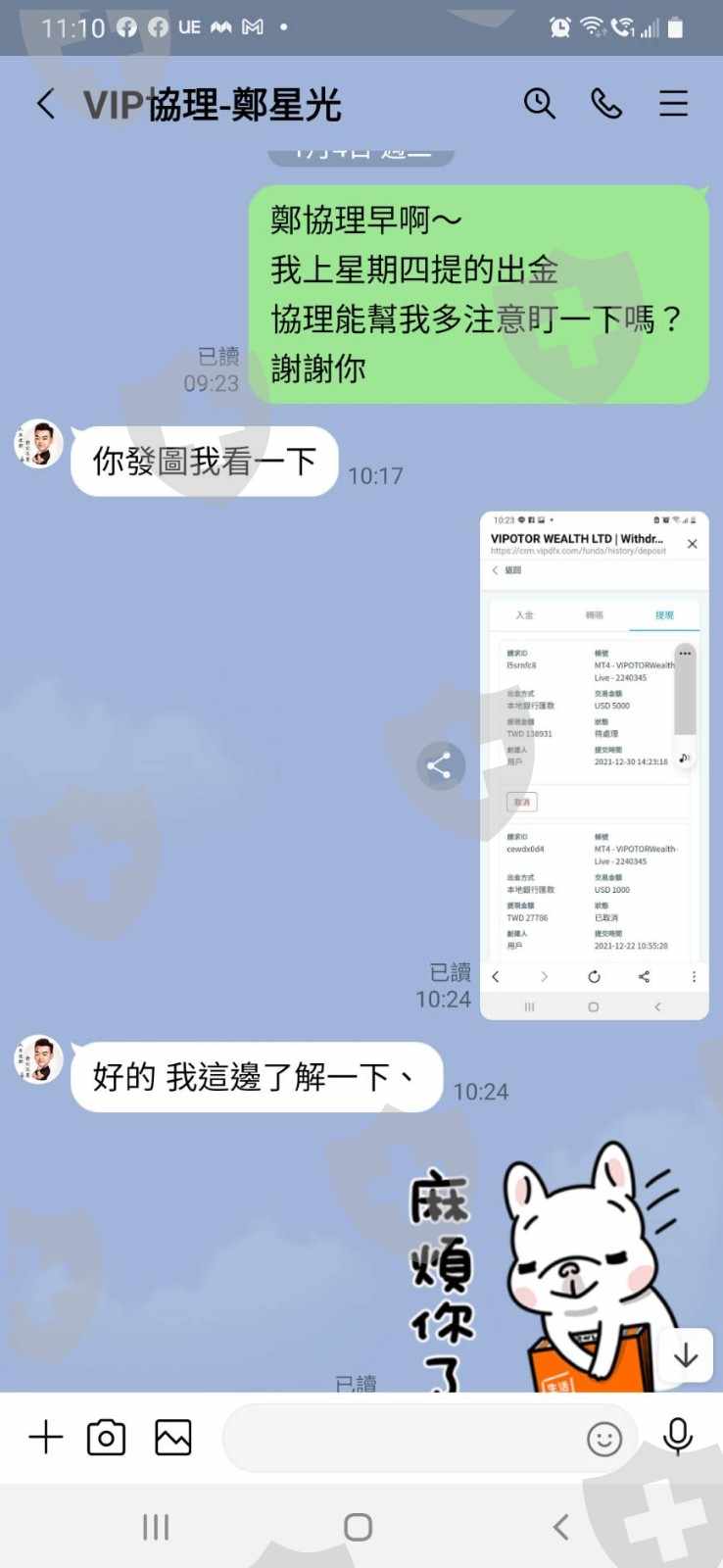 出金...說涉及洗錢法.要繳交20%保證金才能不凍結帳戶、開始真相信不得已下去借貸繳了,後又推說匯兌商為避稅被請去喝茶,各種理由推託不出金。後面全部錢都沒了說是系統遭黑天鵝攻擊後只一天戶頭錢變全空。還要繳50%