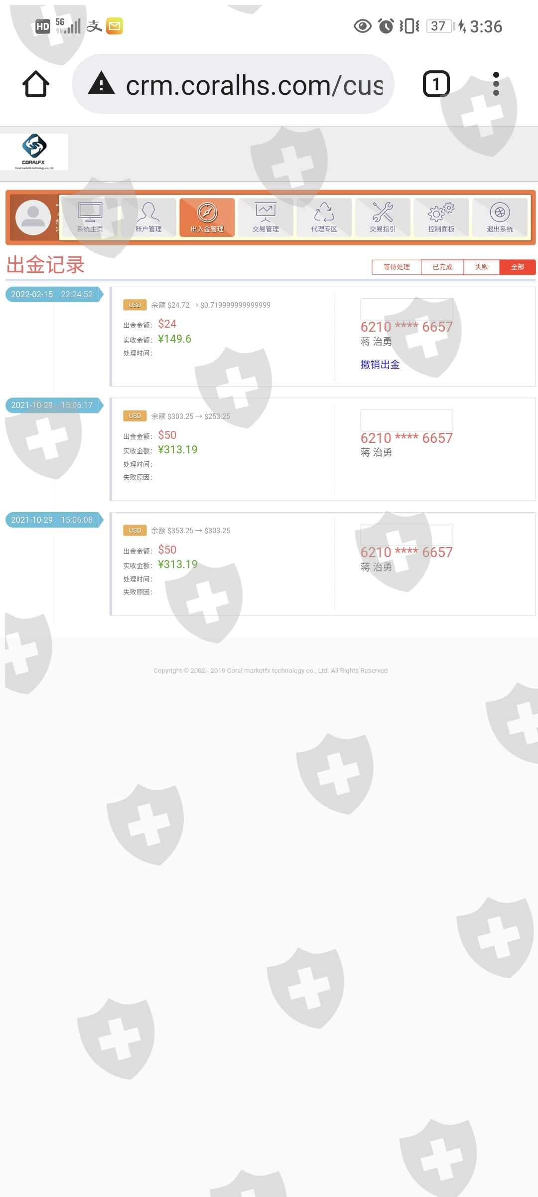 只能入金,无法出金