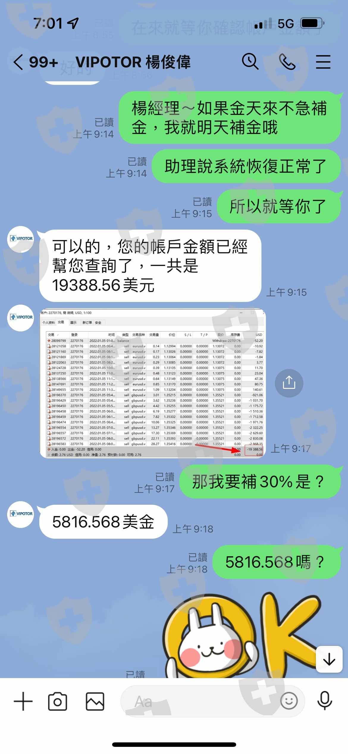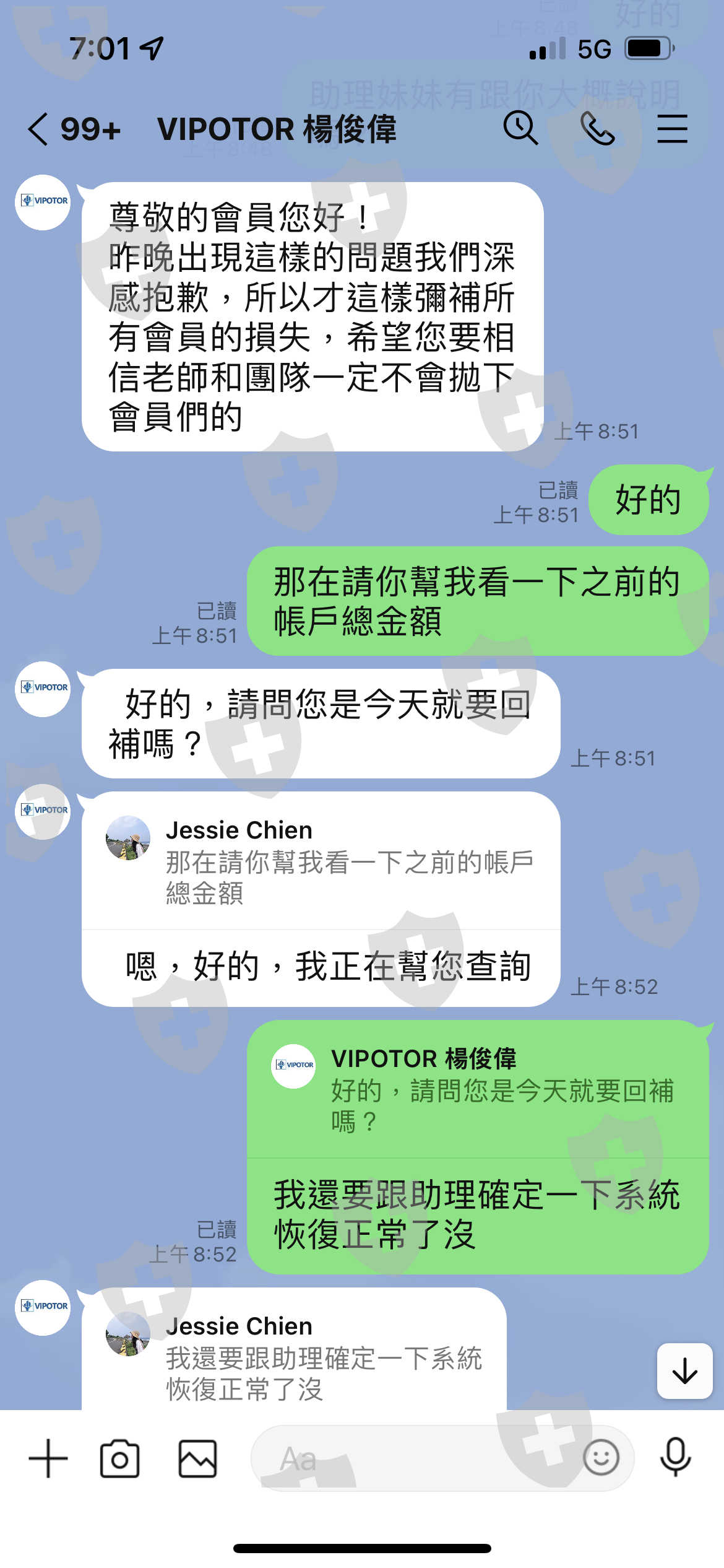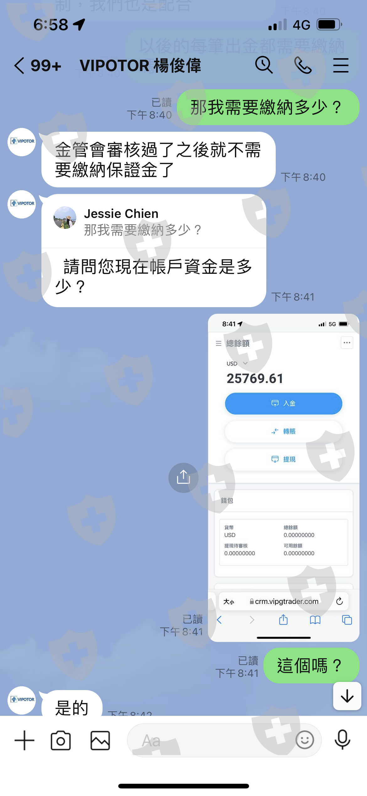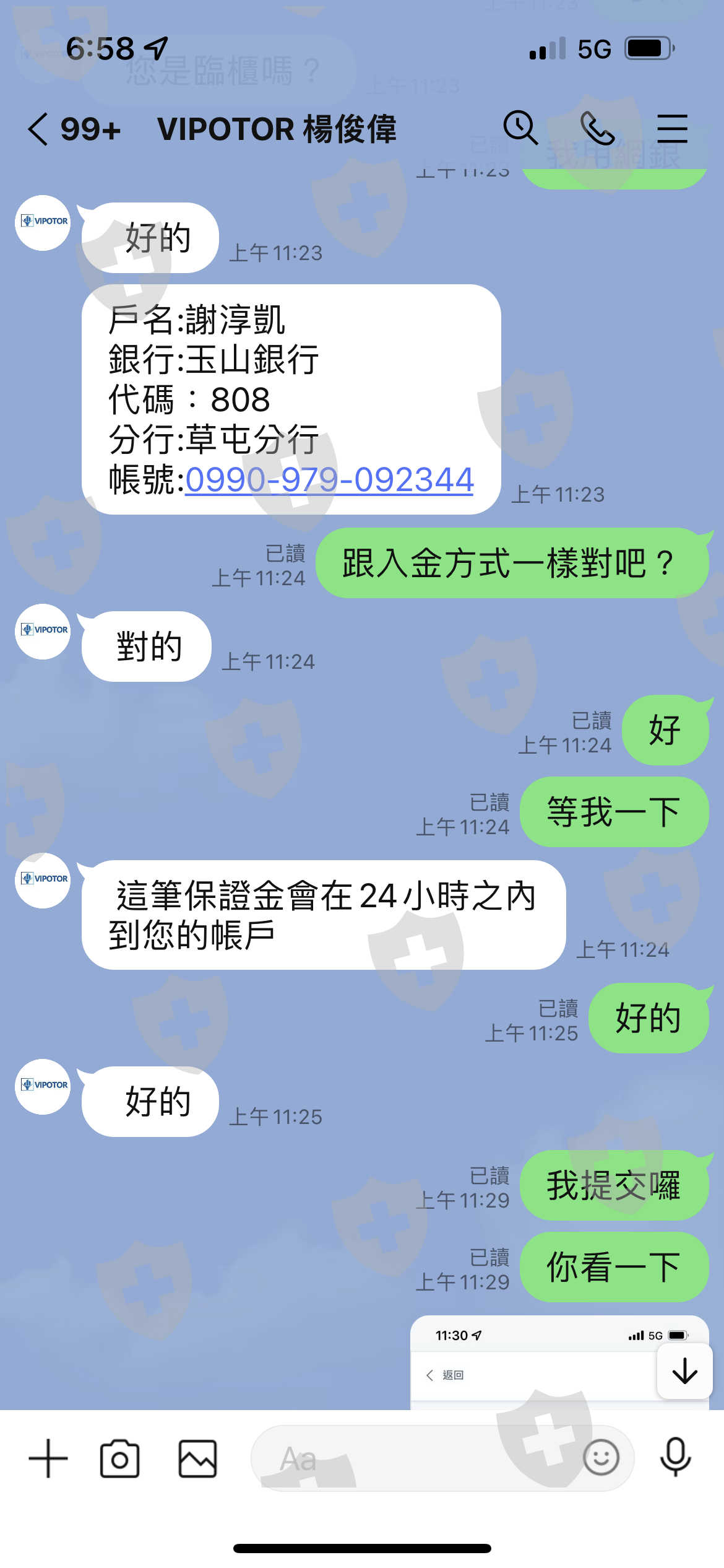 參加了Vipotor的外匯交易,入了金後過一陣子要出金就說網頁被駭客入侵導致帳戶的錢都沒了,就說我要先回補30%的資金才能還70%的錢給我,等我回補了之後要出金,又讓我繳20%的保證金,就一直無法出金,目前已經報案確認是被詐騙