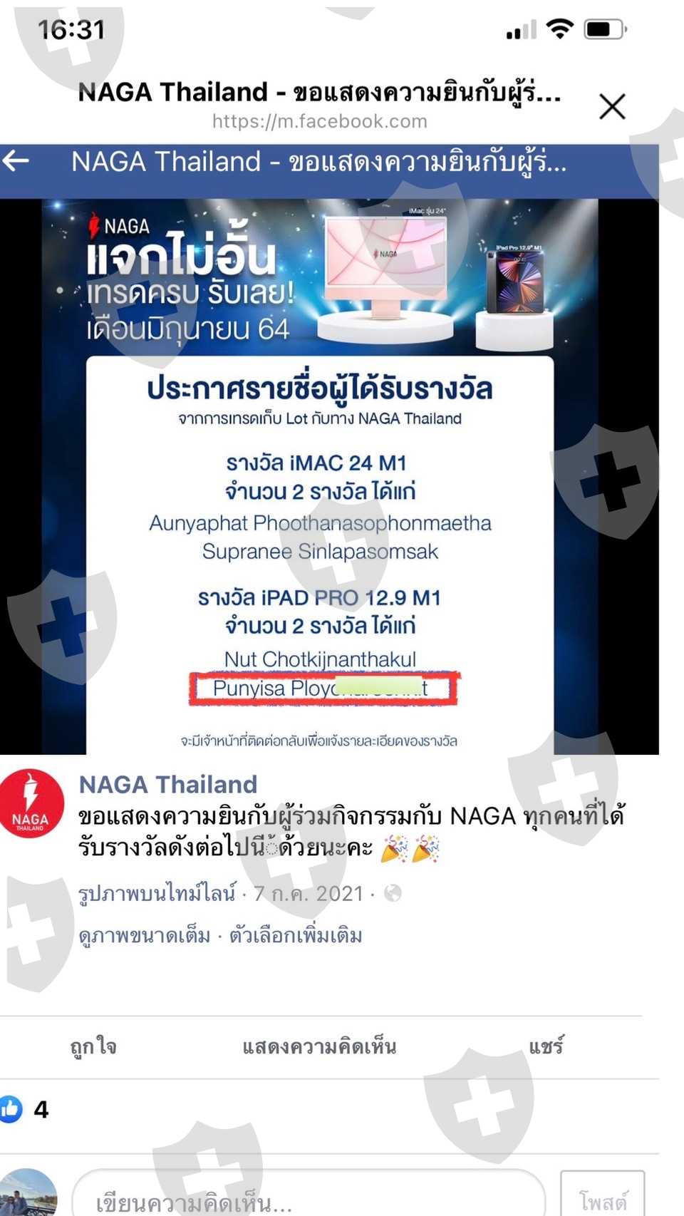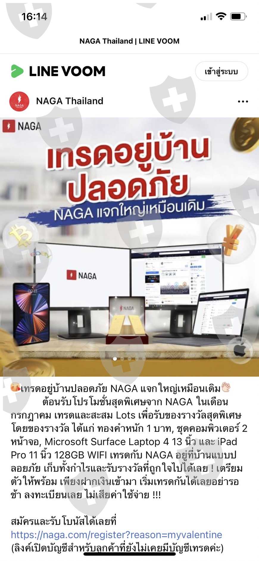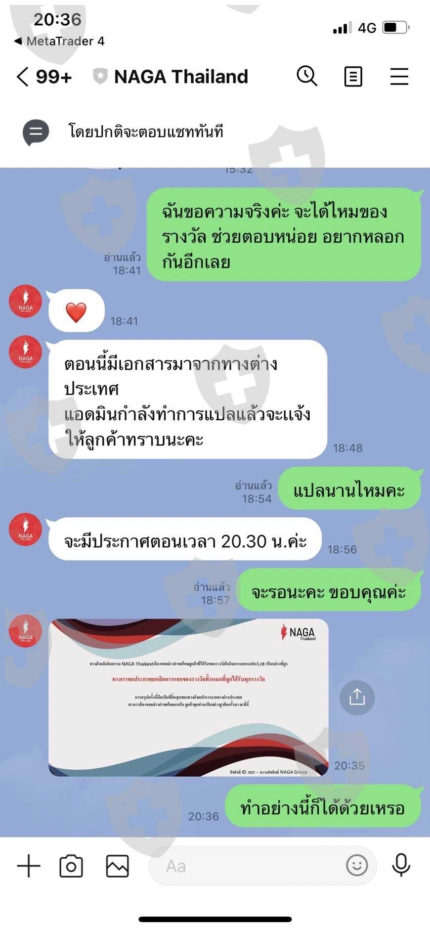 ดิฉันได้เข้าร่วมกิจกรรม เทรดสะสมลอต เดือน มิย. และเดือน กค. ปี2564 ทำทุกอย่างเทรดครบตามเงื่อนไข และทางโบรคเกอร์ประกาศรายชื่อผู้ได้รับของรางวัล ทั้งipad และโน๊ตบุ๊ค ซึ่งก็มีชื่อดิฉันอยู่ เจ้าหน้าที่นากา บอกว่าของรางวัลจะจัดส่งให้ถึงบ้าน ดิฉันรอจนสิ้นเดิอนสิงหาคม ก็ทวงถามของรางวัลจากเจ้าหน้าที่นากา ได้รับคำตอบว่า ของรางวัลอยู่ระหว่างการจัดส่งจากสำนักงานใหญ่ที่เยอรมัน ดิฉันจึงรอต่อไปอีก 2สัปดาห์ เมื่อไม่ได้รับของ ก็มีการทวงถามซ้ำๆ เดือนละหลายครั้ง ที่นี่เจ้าหน้าพูดจาบ่ายเบี่ยง โยนความรับผิดชอบระหว่างสำนักงานที่ไทย กับสำนักงานใหญ่ ขนาดดิฉันส่งอีเมล์ไปหา CEO ที่เยอรมัน เรื่องเงียบเฉย เดือน มค.65 NAGA แจ้งว่ายุติการให้ของรางวัล