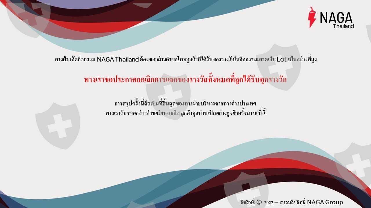 我参加过活动,2021年6月和7月交易积累手数,无所不能,按条件交易。经纪人公布了获奖名单,ipad 和 notebook 都有,上面有我的名字。娜迦员工说奖励会送到你家。我一直等到八月底。然后向娜迦工作人员索要奖励收到的答复是奖品从德国总部交付。所以我又等了 2 个星期才收到货。有反复的要求。一个月几次在这里,官员们说话偏转。在泰国的办事处之间承担责任与总公司甚至我也给德国的 CEO 发了一封电子邮件。安静的故事。1 月 65 日 NAGA通知颁奖已停止