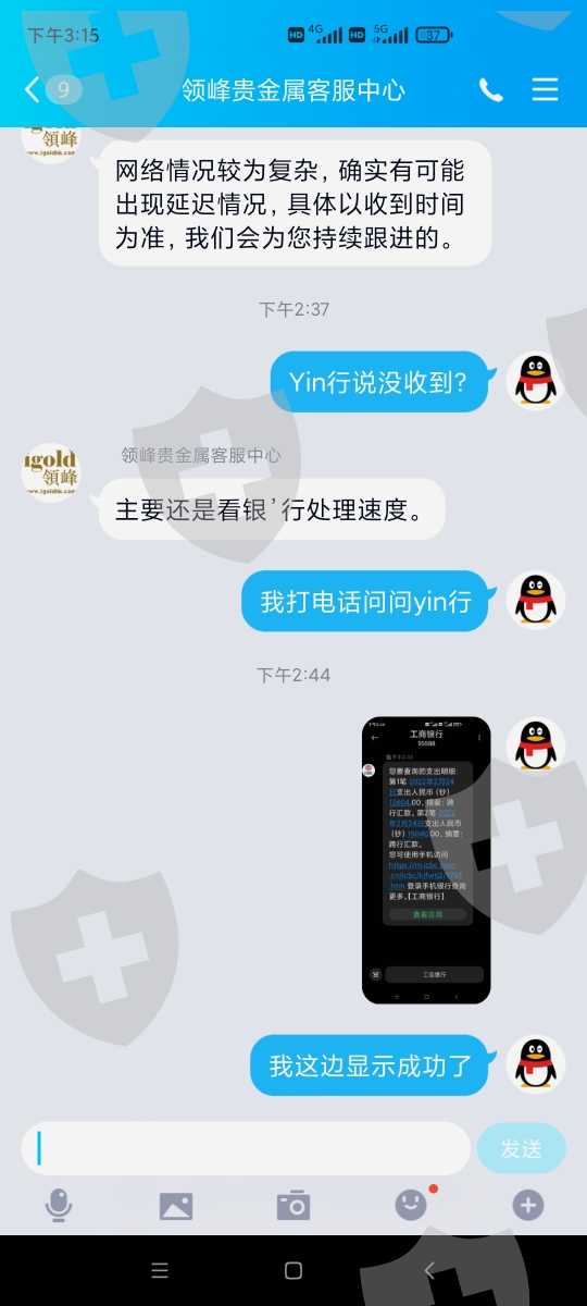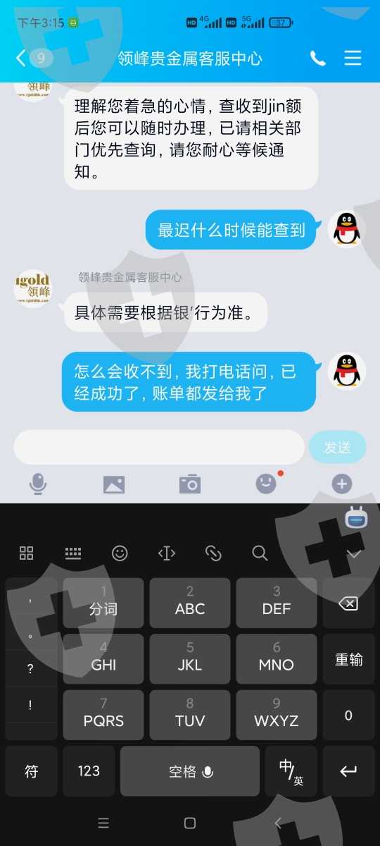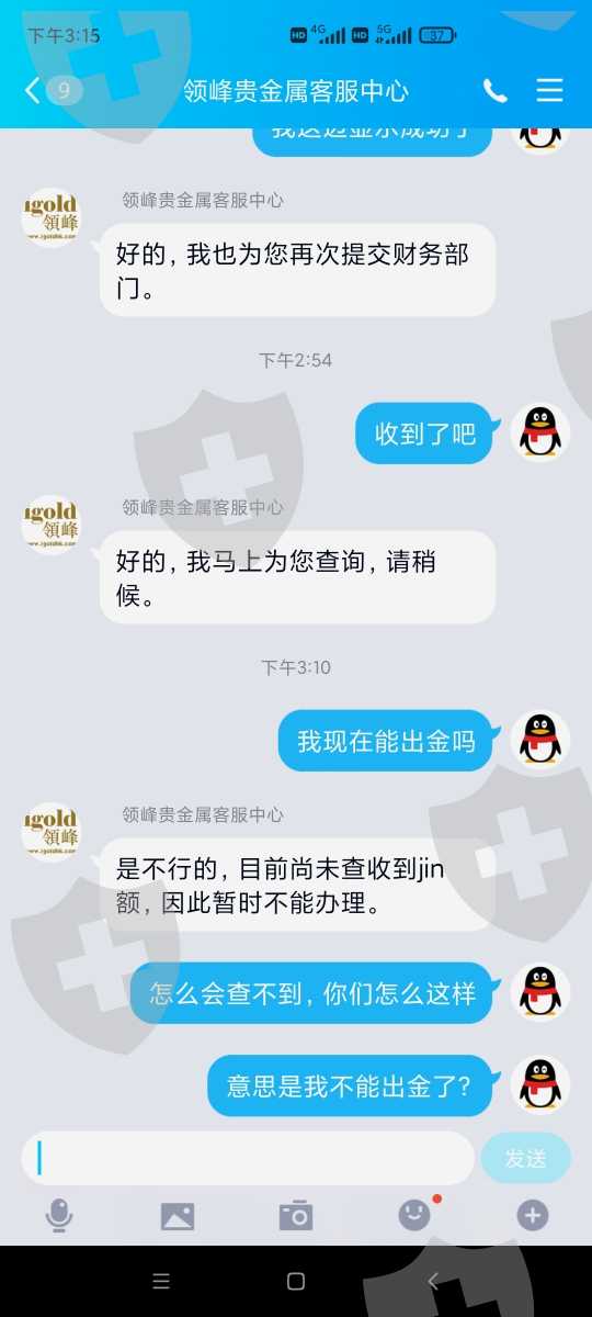 领峰贵金属黑平台,不让出金,我入金转账成功,他们却说没收到,不让出金