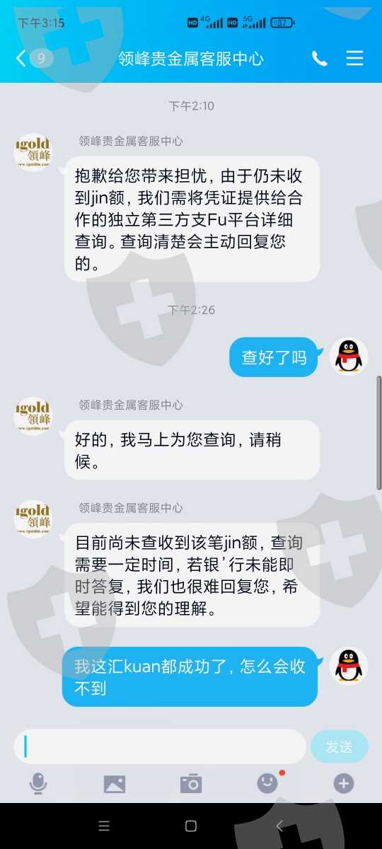 领峰贵金属不让出金,黑平台,我汇款成功他们却说没收到