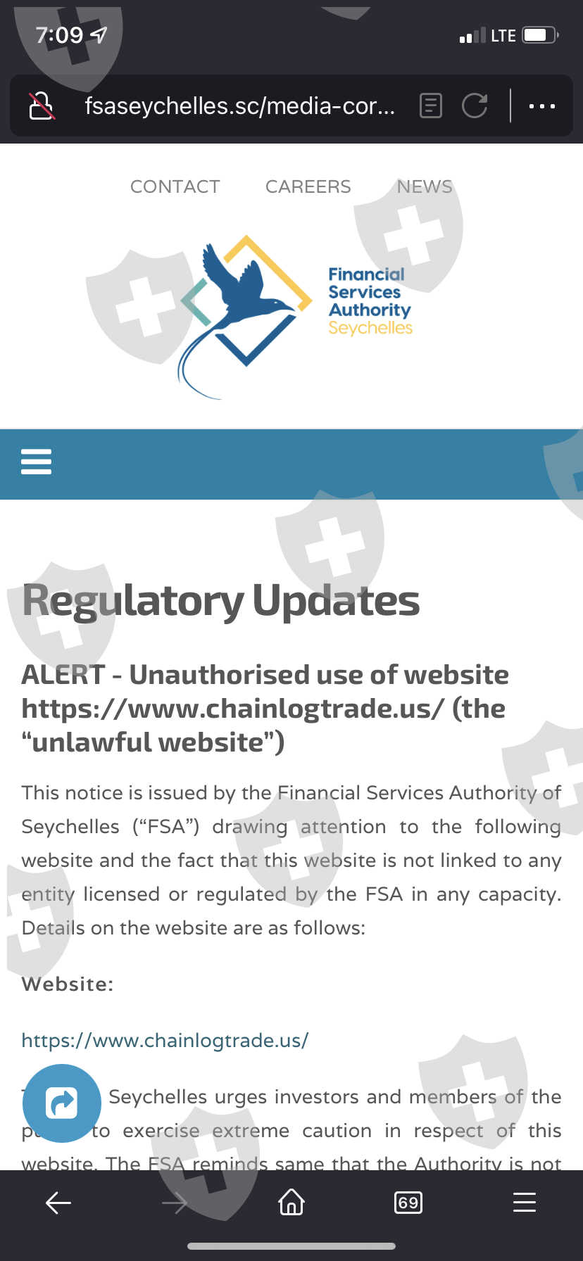 Chainlogtrade未在sfa上登记