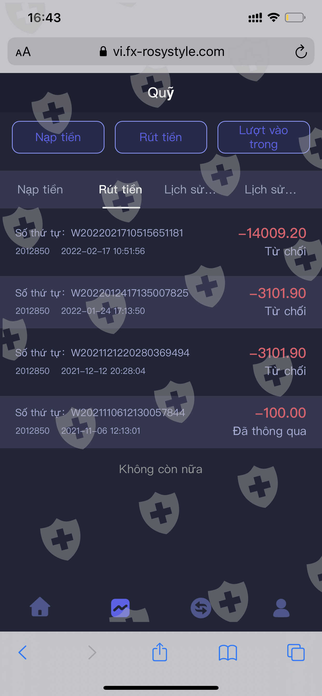 Tôi tham gia sàn này từ ngày 11/05/2021 cùng với đội chuyên gia quản lý tài sản. Ngày 09/09/2021 tôi được nhóm tự quản lý tài sản (qlts) này thực hiện giao dịch nhất quán tuy nhiên nhóm này lừa đảo hướng dẫn giao dịch ngược xu thế và có sự gian lận trượt giá nghiêm trọng làm cháy tk với số tiền: 76.617.99 $. sàn cũng không cho tôi rút số tiền còn lại. đã liên lạc đội ngũ qlts nhưng đều bị từ chối giải quyết. tôi muốn sàn đứng ra giải quyết trách nhiệm và trả lại số tiền đã tổn thất cho tôi.