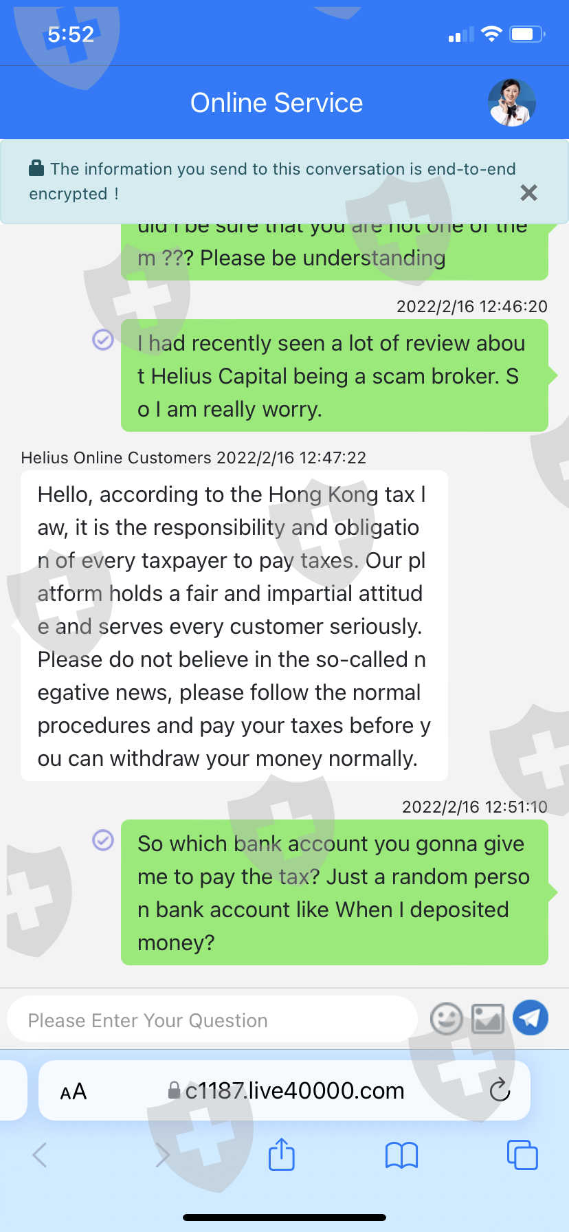 我使用mt5,交易商是Helius Capital, 现在我想取款,他们要求付税,他们说会在1-7个工作日内通过香港税务部门寄出税单,现在我联系不上客户服务,帐户被冻结,请帮忙