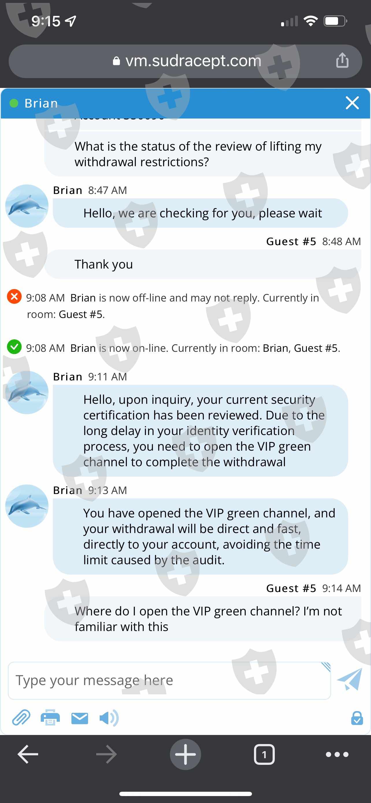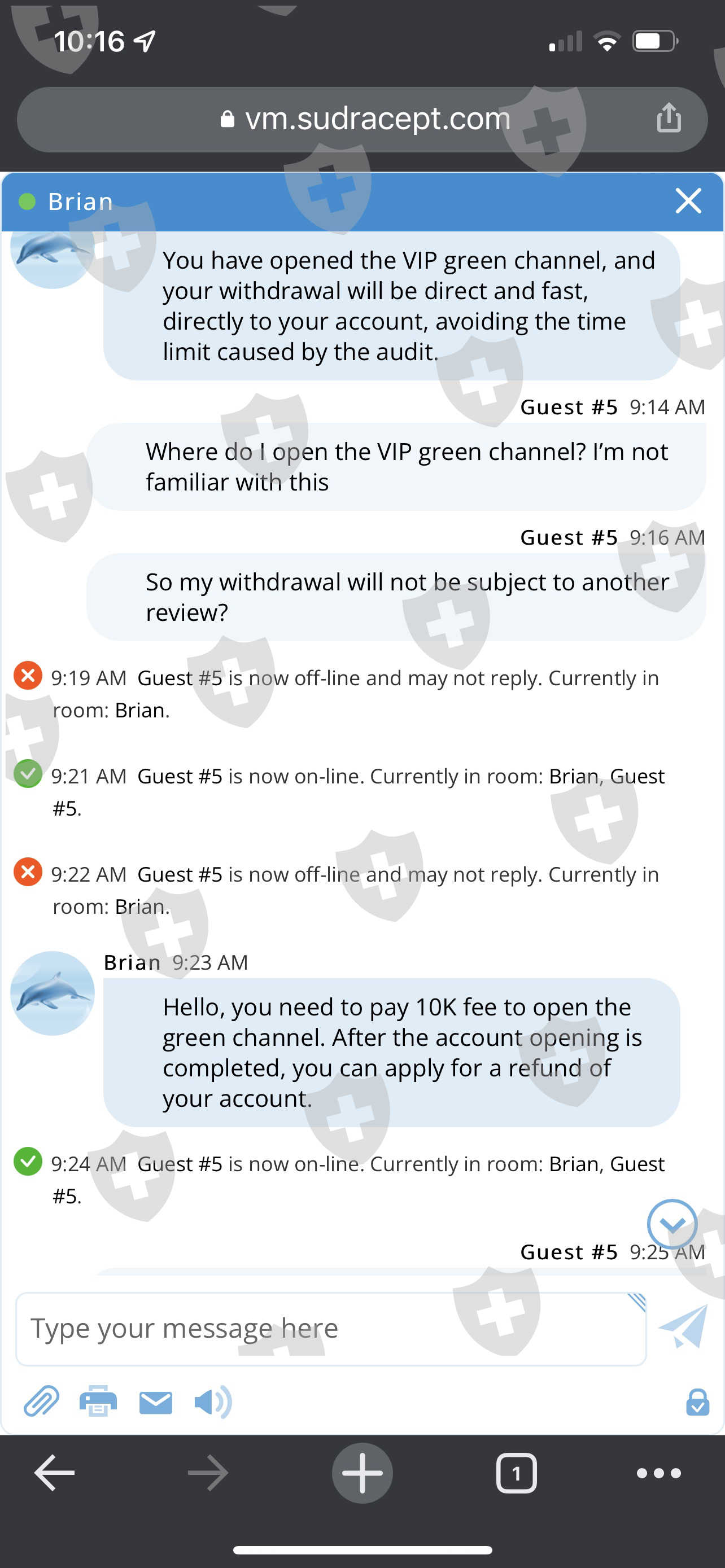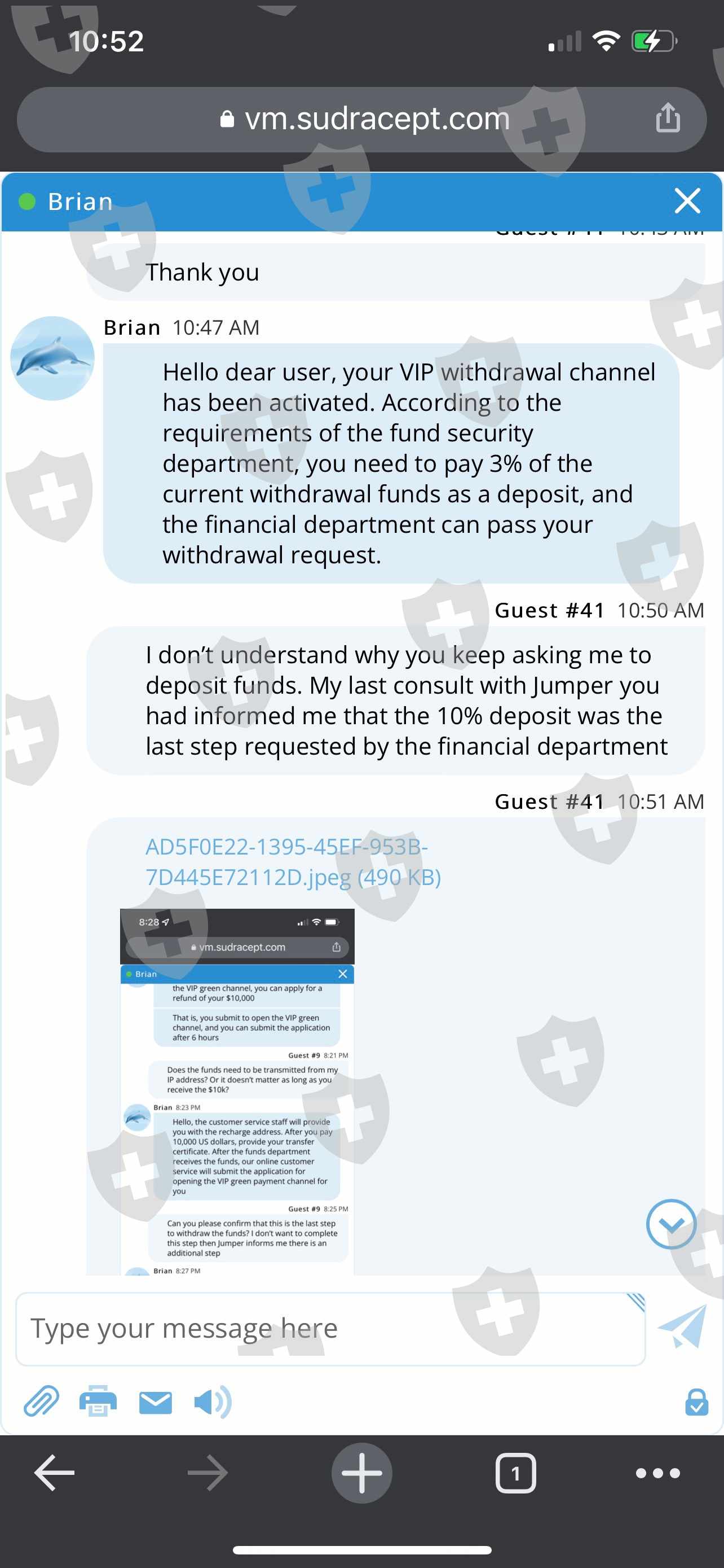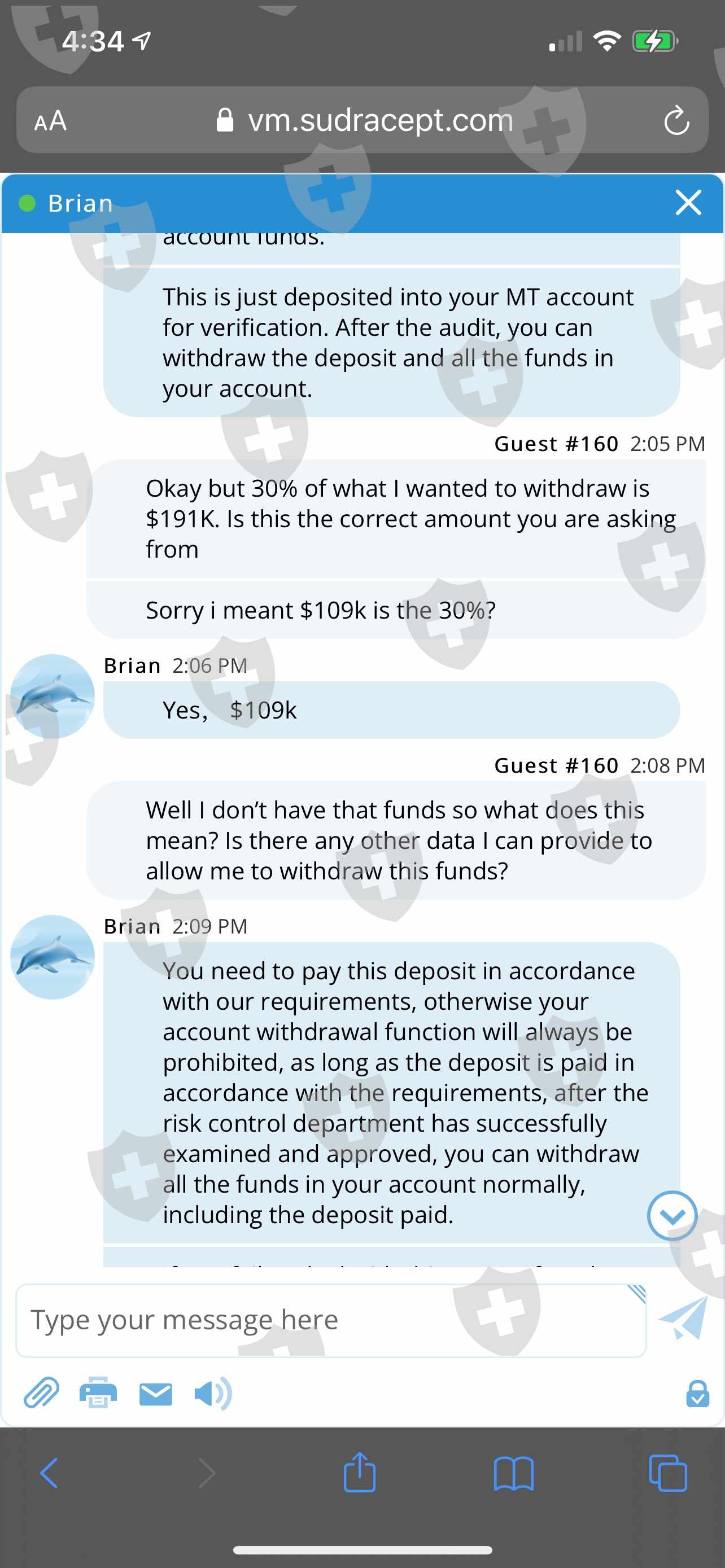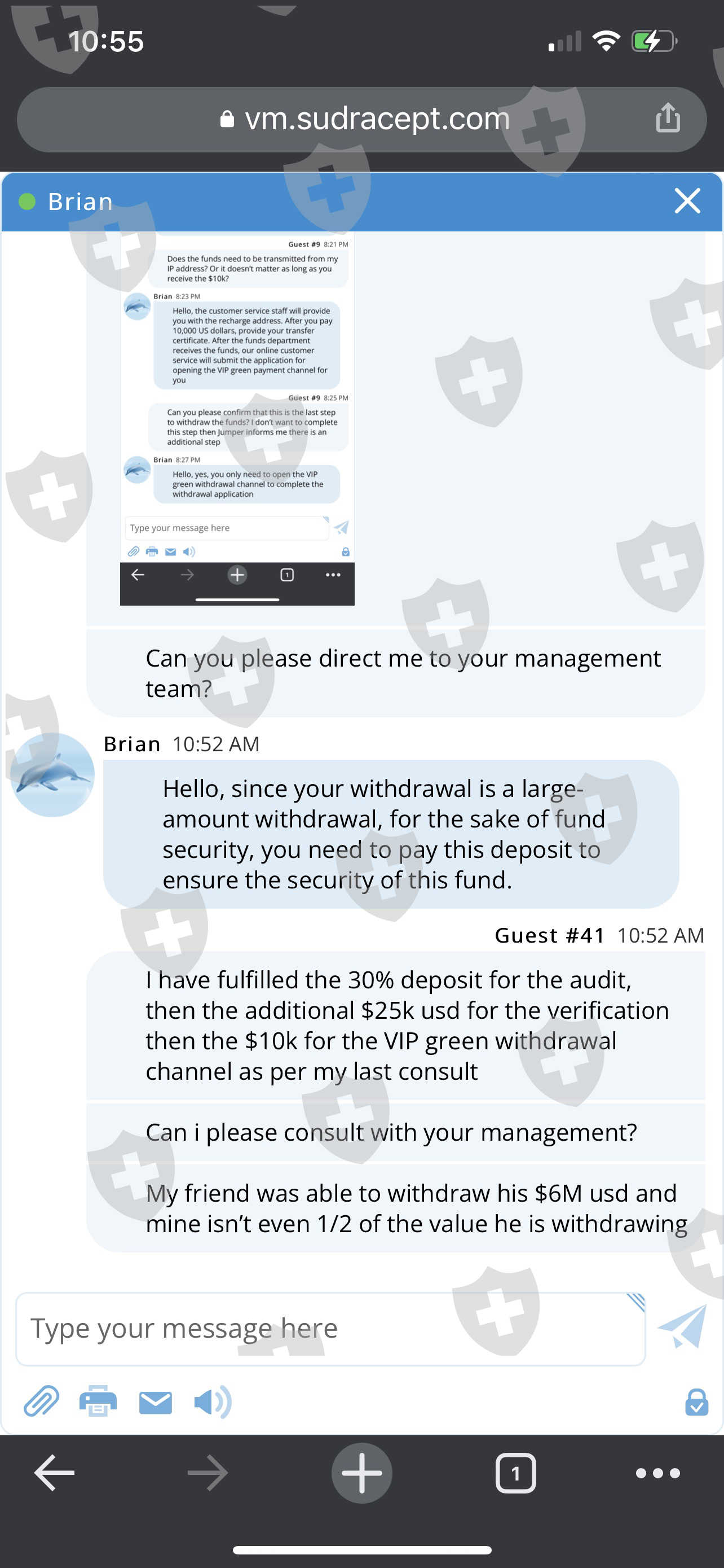 I submitted a withdrawal application to for $625K when I initiated an buy/sell. I received an email stating that the audit couldn't be complete because of the transaction. I was requested to deposit 30% of my profit to verify my identity. So I compiled my funds and deposited. They informed me that I am now required to deposit $10K to open the VIP green withdrawal channel. They confirmed that this would be the last step. Now they request a deposit 3% of withdrawal value. Help please!