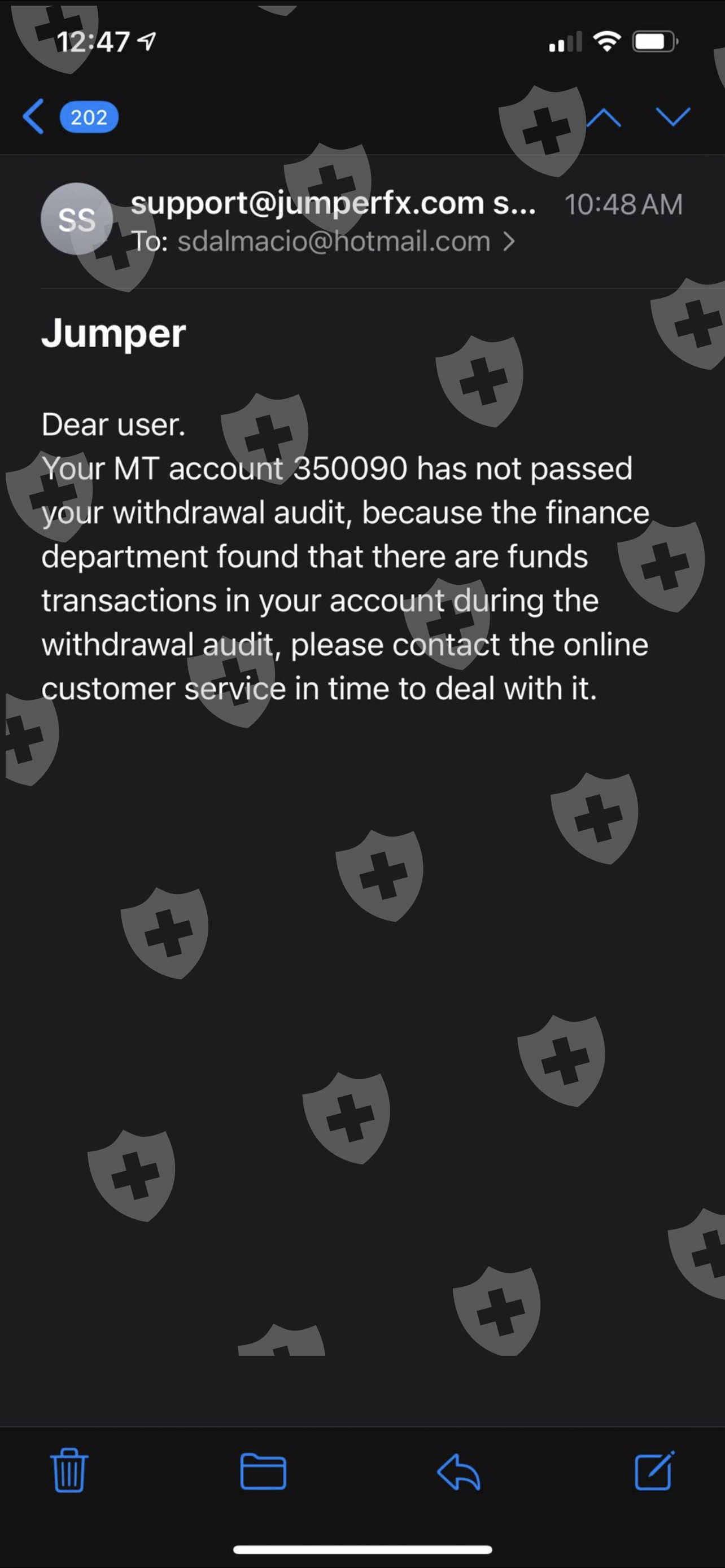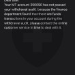 当我买入/卖出时,我提交了625K美金的提款申请。我收到一封电子邮件,说明由于交易而无法完成审计。我被要求存入利润的30%以验证我的身份。所以我整理了我的资金并存入了资金。他们告诉我,我现在需要存入1万美元打开VIP绿色提款通道。他们确认这将是最后一步。现在他们要求存入取款金额的3%。请帮忙!