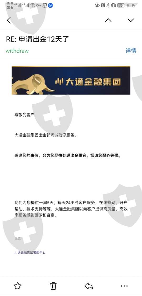 申请出金15天还没扣款,问客服和出金部门就让等待