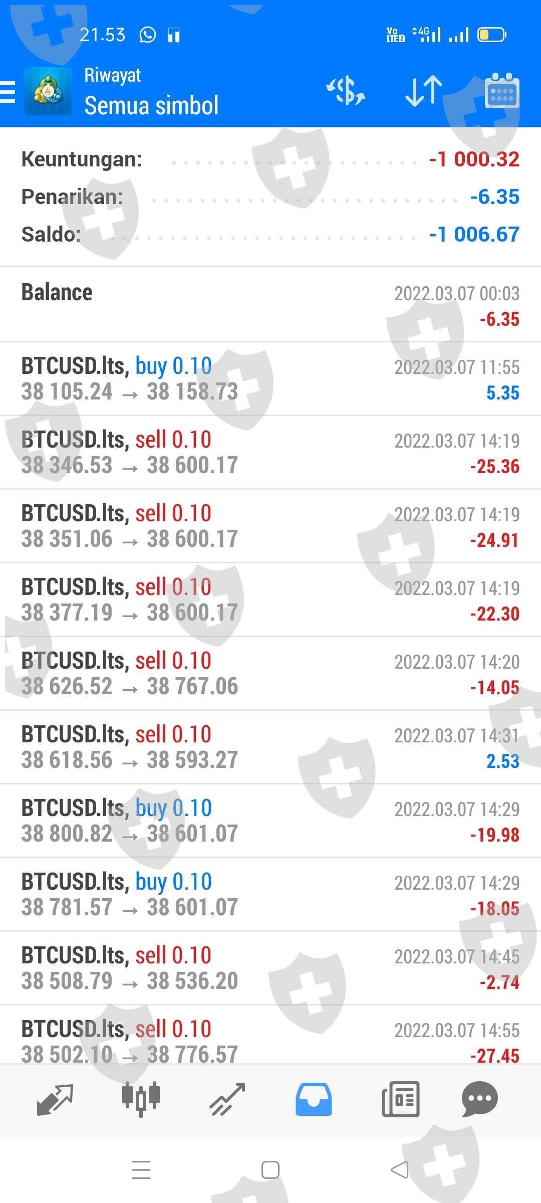 Scam MC losing money. No cut loss. All loss acknowledged but profit not. Manipulation transaction. Almost transaction loss in one day at 7 mar 22.