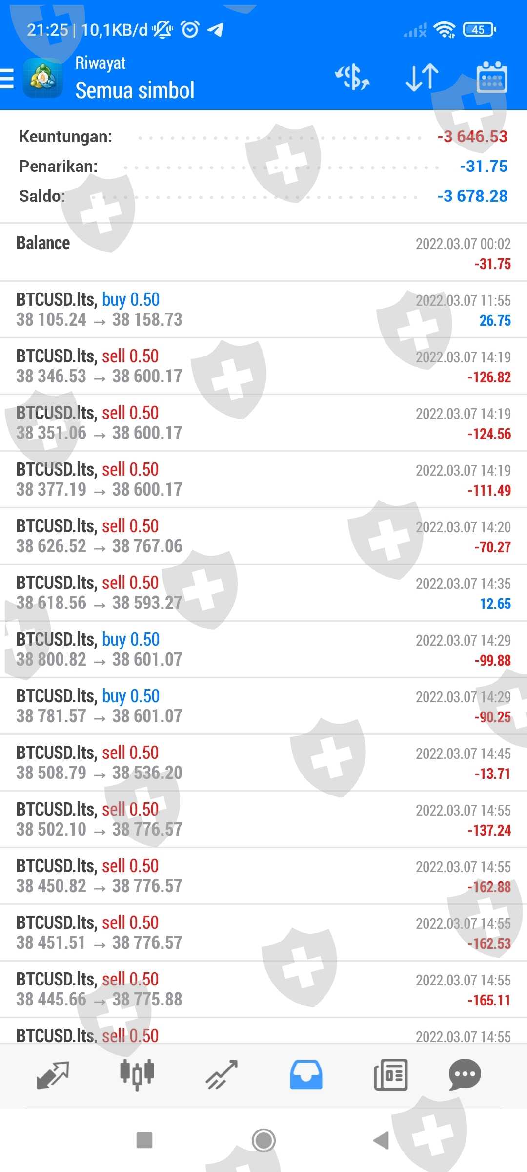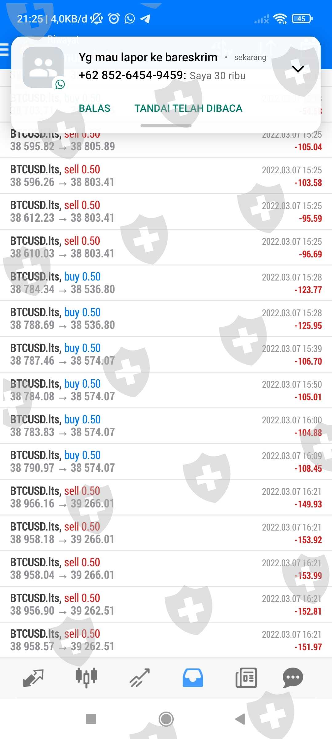 Malam ini, 07 Maret 2022, Lotus Fahrenheit melakukan Trading dengan tujuan Margin Call dan menghabiskan saldo modal Semua member nya.