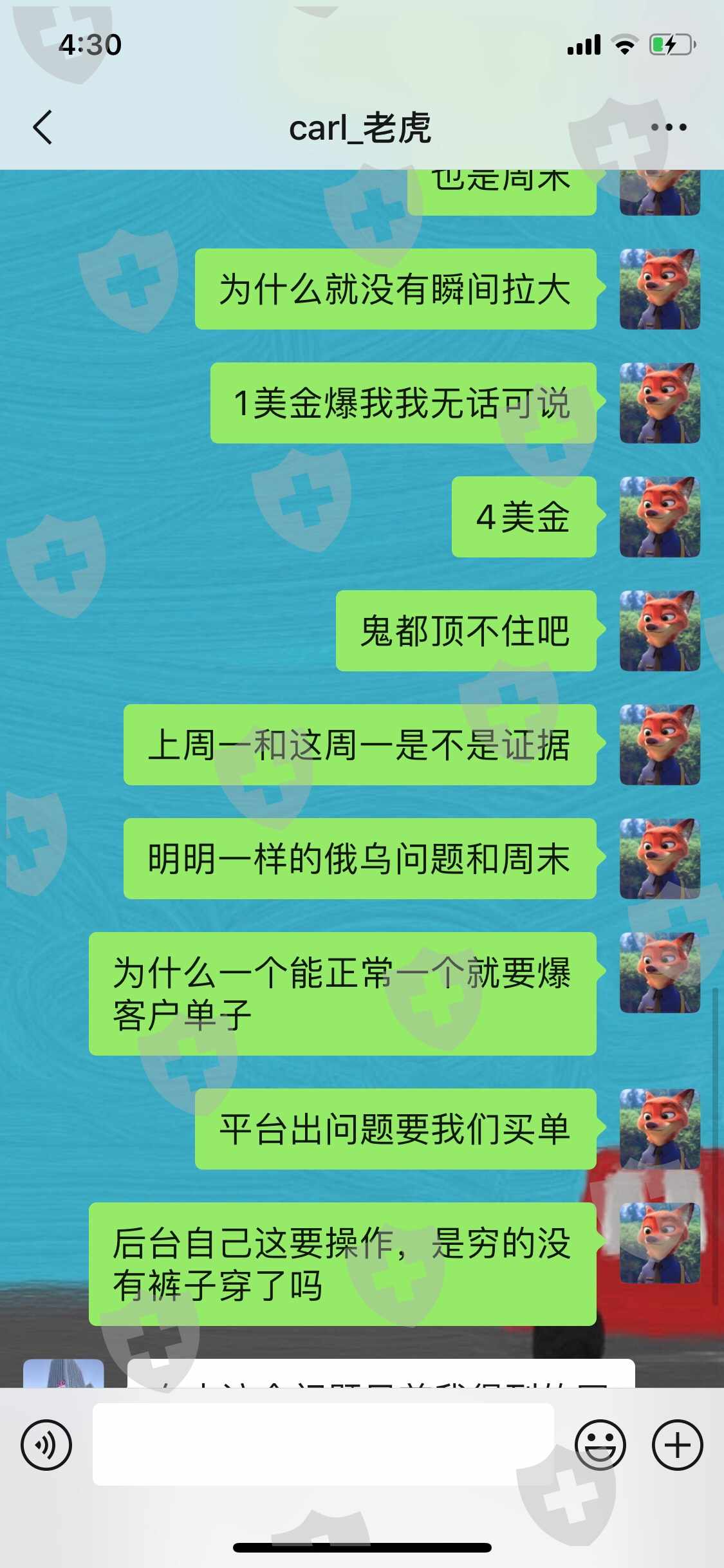 恶意拉大点差爆客户仓,点差达到400点,四美金之多!客服不理睬,平台要客户自己承担所有损失