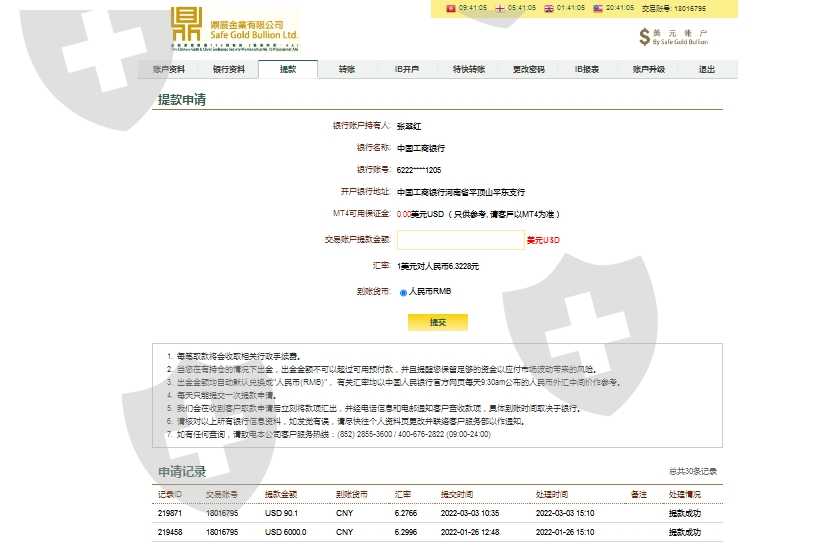 我于2022年1月26号出金6000美金,至今没有到账。联系客服一直说在催促财务办理,了可快两个月了,至今没有解决。附件有图片为证。