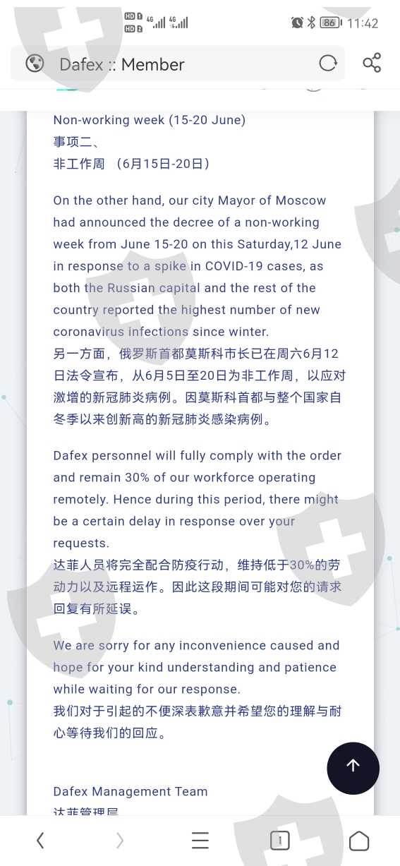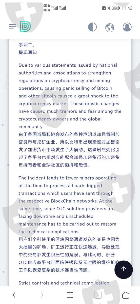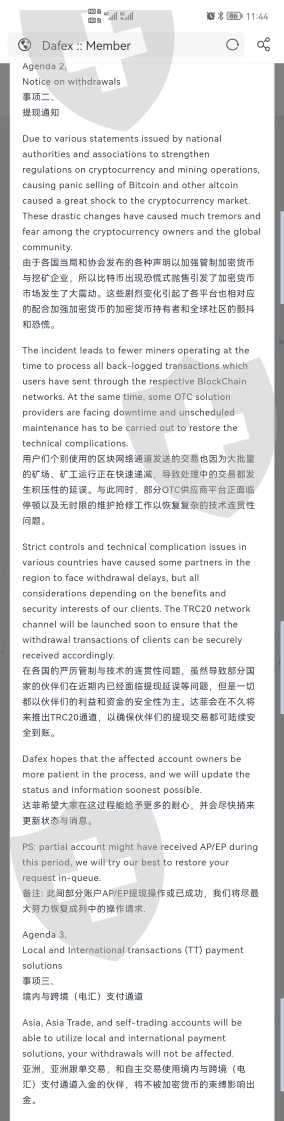 2021年的五月开始因为市场和政策原因提现就开始中断,平台一直说寻找支付供应商合作。但是因为疫情和局部战争一直无法找到合适支付商,2022年3月初再发公告的时候,单说找到对接公司,对投资人的本金和收益只字不提,此时所有人的账户交易还在正常操作,3月7日结束一周交易周期后停止了所有账户的交易。发送提现申请到平台邮箱,也一直没有回复。现在希望本金和收益能正常出金。