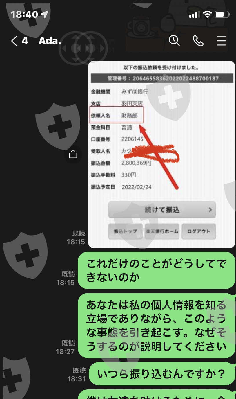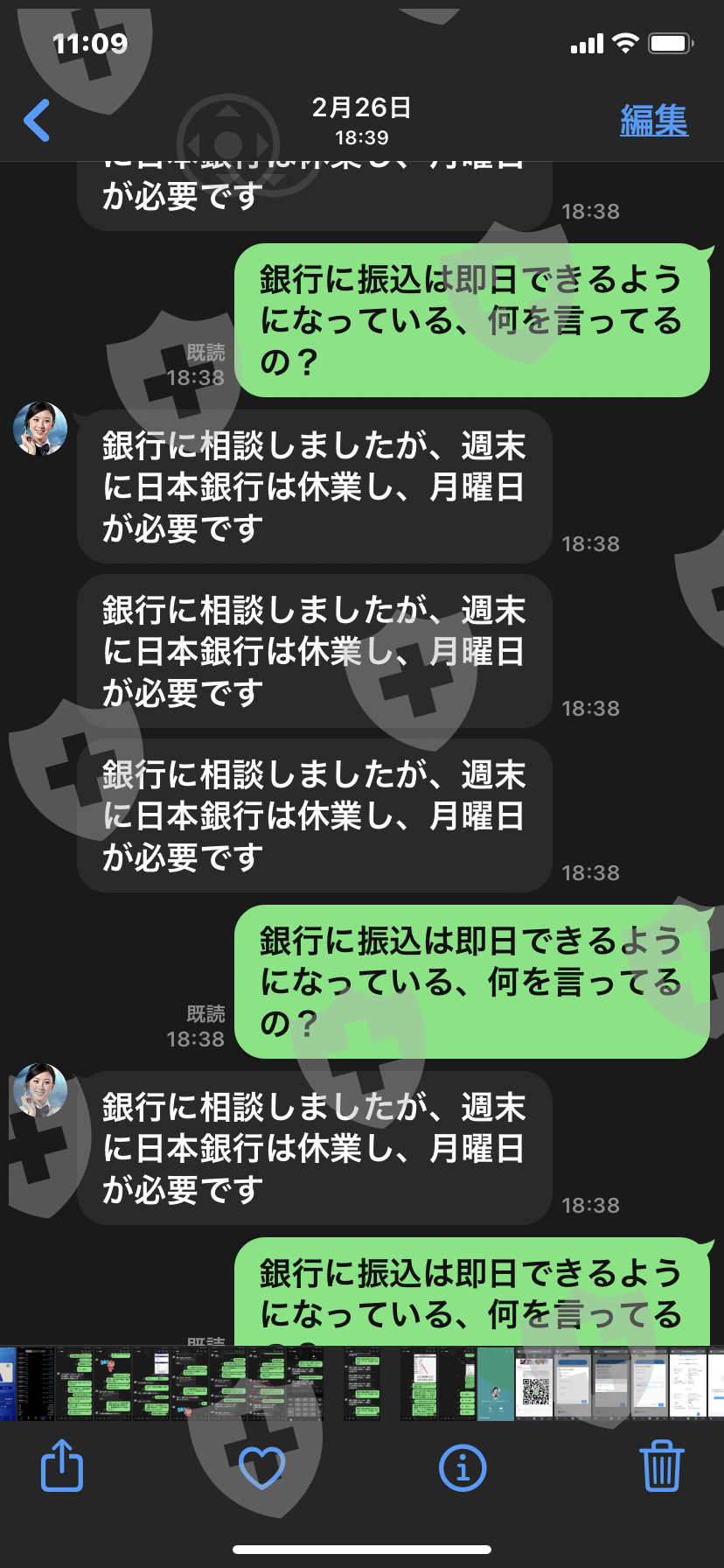 出金依頼から四ヶ月もかかってやっと資金を集めて税金を納め、コールマネージャーのAda Line ID :11mt5 本当に信用できません。この人のおかげで306万が出金できず、トータル85万もの税金だの弁護士手数料、データ復元保証呂名目で支払っても、最後はメッセージ無視です返信されず。逃げられました。その友人というJoyという山田光子という名前を語っていた。女もAdaの無視と時を同じくして、Joyという女も消えていきました。たぶん一味か同一人物でしょう。大阪大東市のホテル管理の仕事をしているらしい。technology latestは正規の会社なのか?
