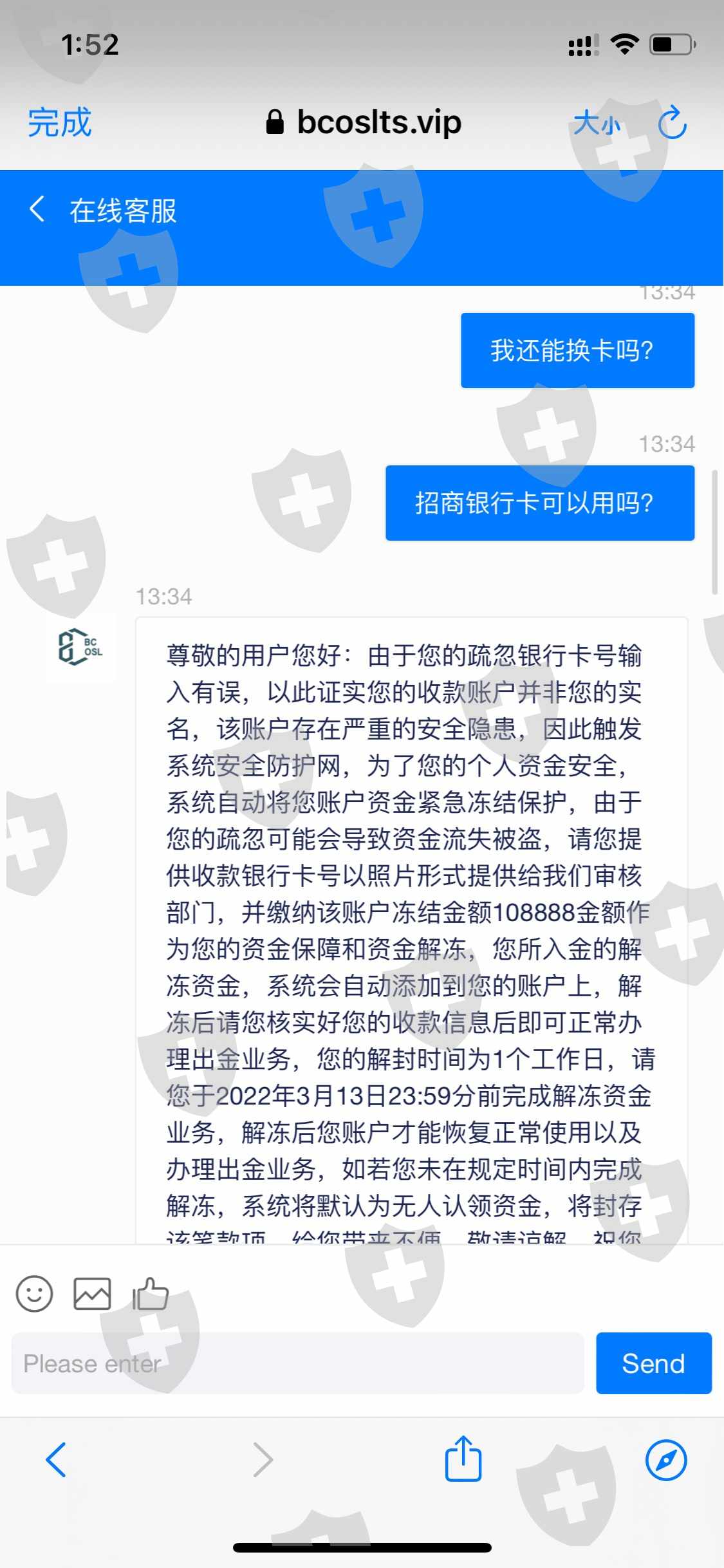 bc旗下osl交易平台,不给出金,故意说银行卡错误,让交保障资金。