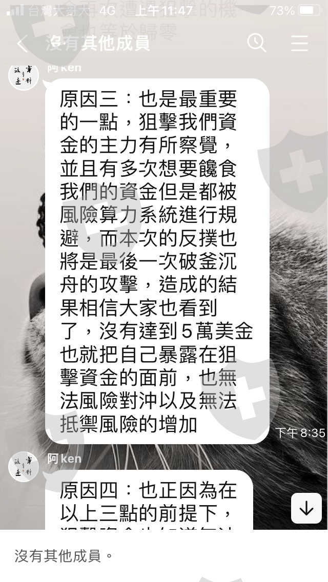 該網站以量化自動交易可穩定獲利為誘因(澳洲研發團隊研發之系統),誘使投資人入金投資,然後以量化交易遭到別的團隊狙擊導致資金虧損為理由,聲稱投資人再入金可分散風險,誘騙投資人再放入資金,然後二次狙擊,資金虧得更嚴重,竟然故技重施,要投資人再放入資金,說保證不會再發生狙擊了,很明顯的詐欺