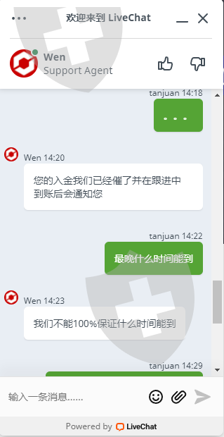 入金超期不到账,客服回复敷衍了事
