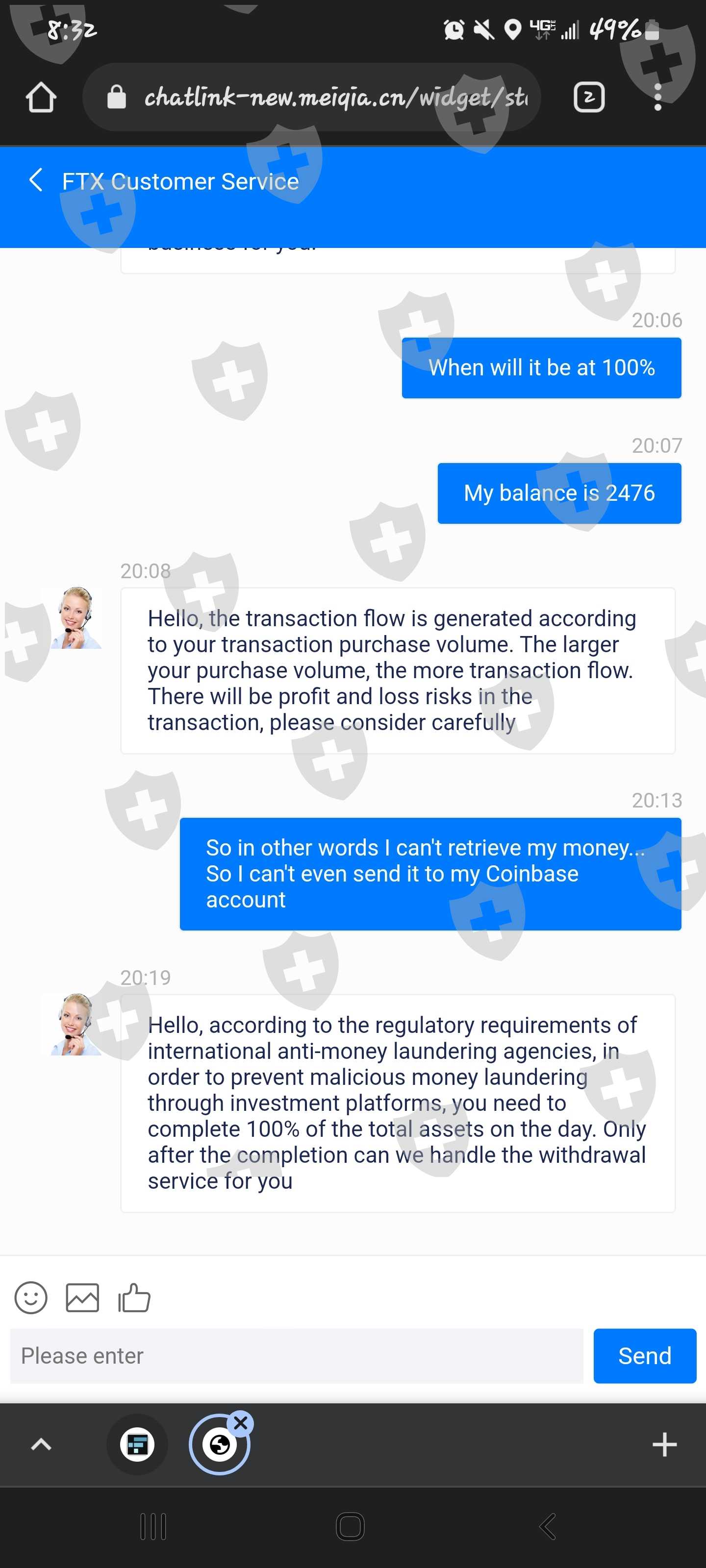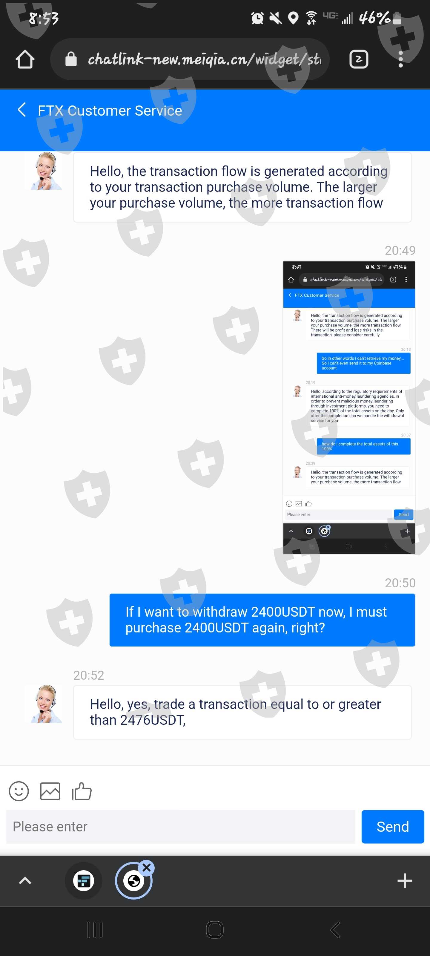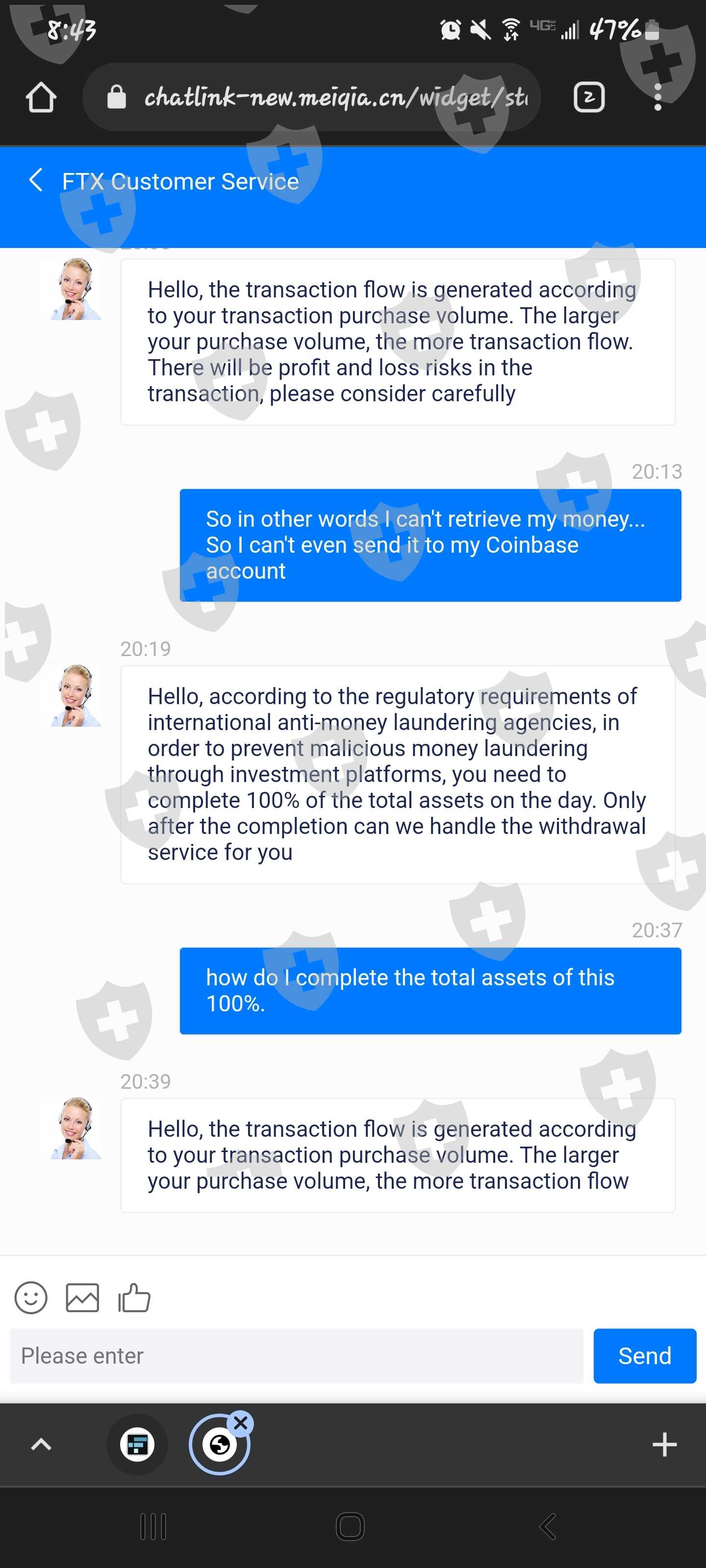 FTX OTC客服发送了这些消息,不允许我提款。请看截图