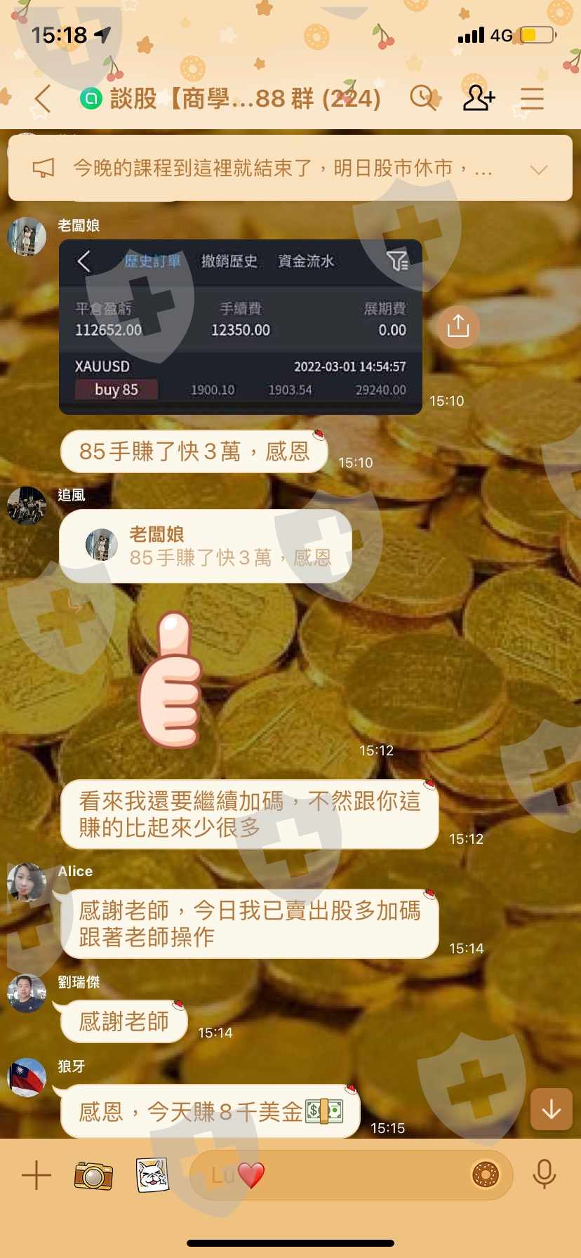 很多人在群組吹牛假裝入資金,有老師在教操作讓你贏很多錢,首次讓你少量出金,之後再誘騙你投入大量資金,再從後台操作滑點讓你一次輸光,網頁就直接換掉讓你找不到平台,