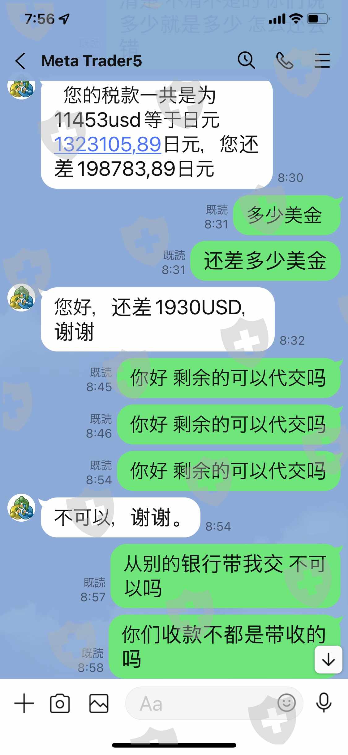 交完税之后他们没有收据,仍然不让出金,继续诱骗强迫5日内交其他风险金费用6443.3美金,我拒绝,他们就置之不理,客服不回复,就这样明目张胆的骗取了18620美金,因此已报警。