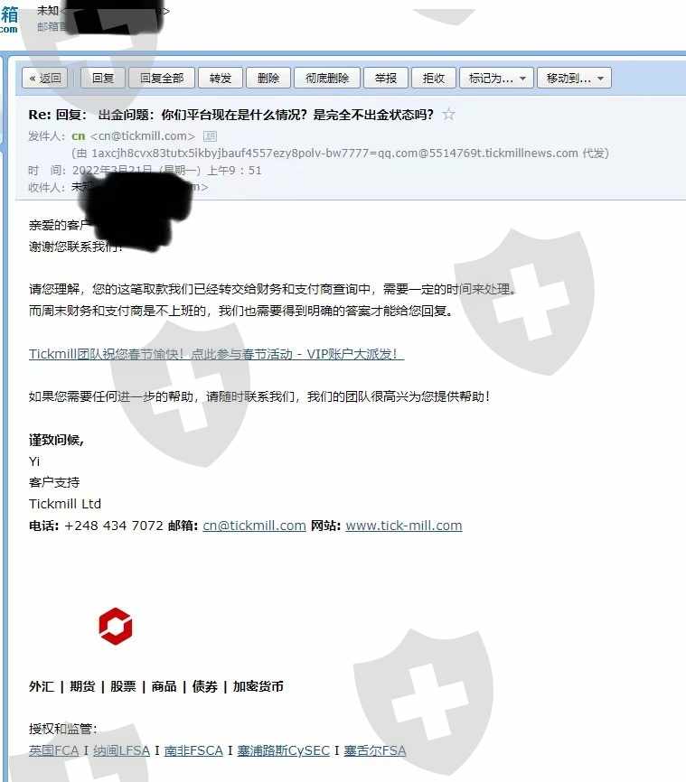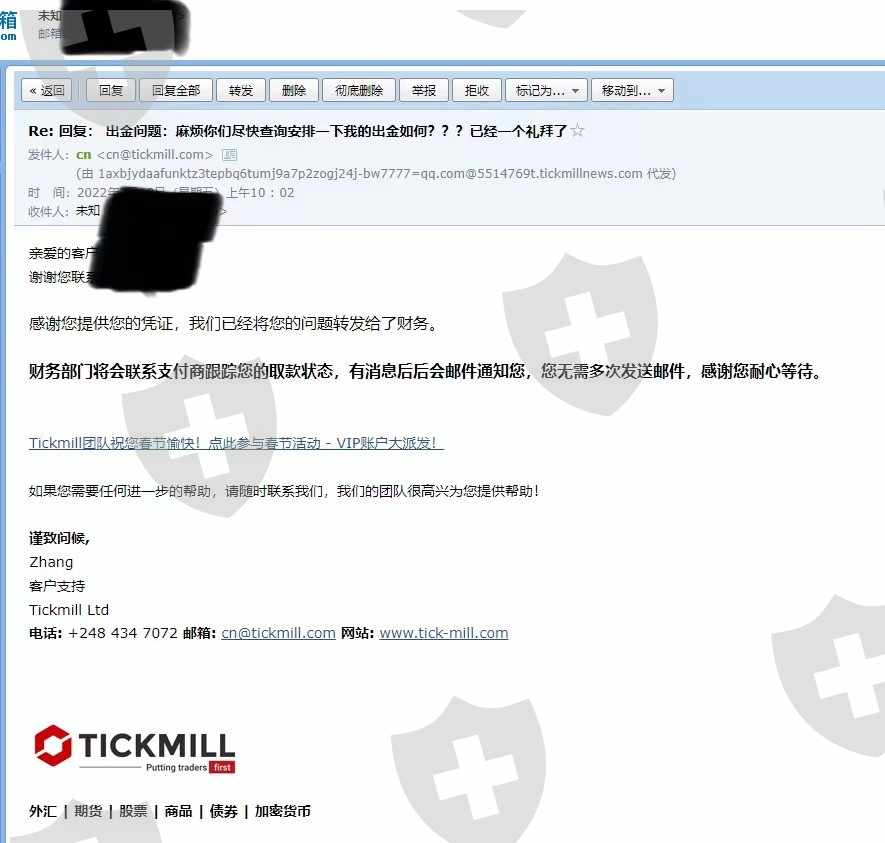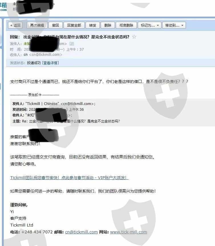 tickmill已经严重无法出金,平台方根本就不管,已经有很多客户无法出金了,交涉无效