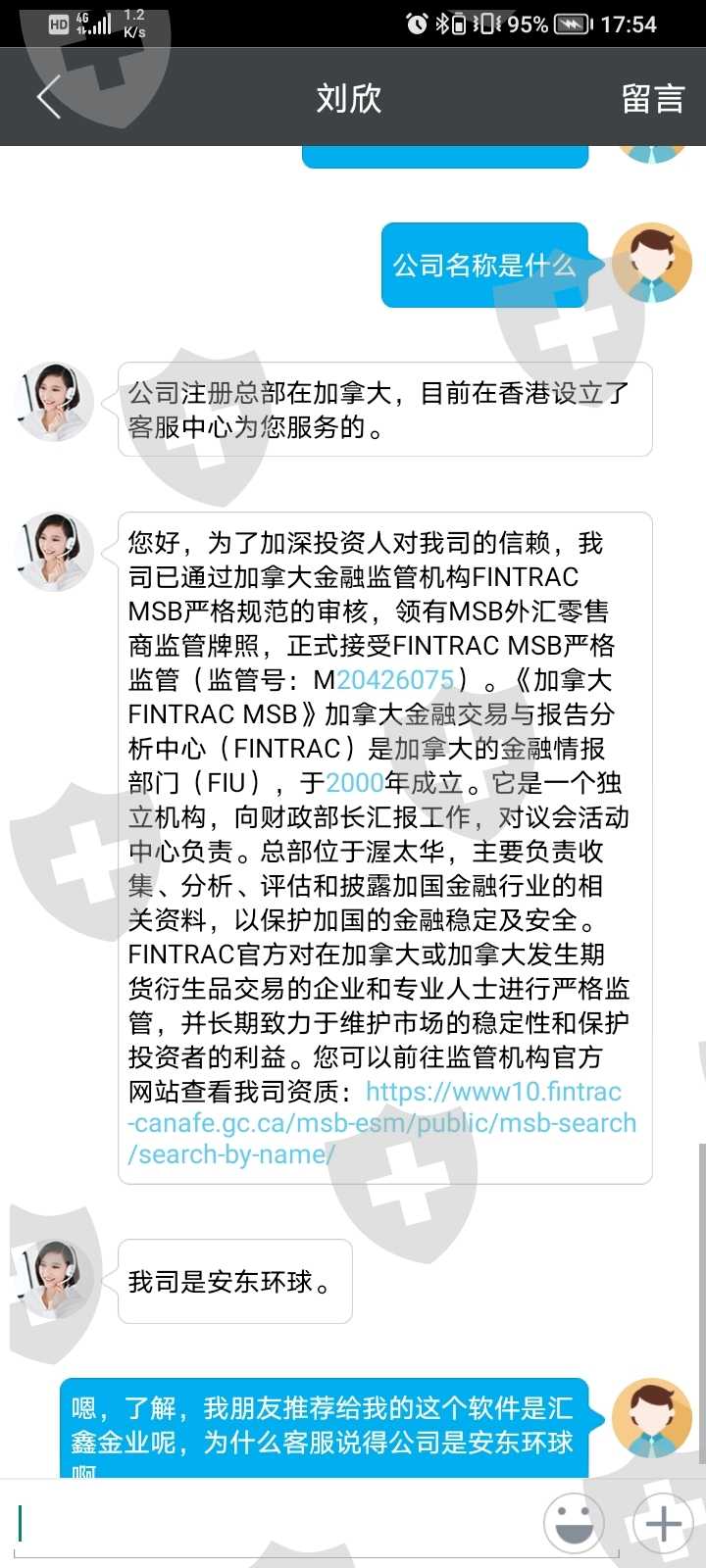 汇鑫金业属于无监管平台,公司地址在加拿大,客服部门在香港,意味着无法找到公司。平台在线客服与安东环球内在线客服完全一样,无客服电话,属于套牌公司,意味着在线客服不回复,无法找到平台。平台冻结账户,导致资金无法出金,在线客服不处理,不回复。