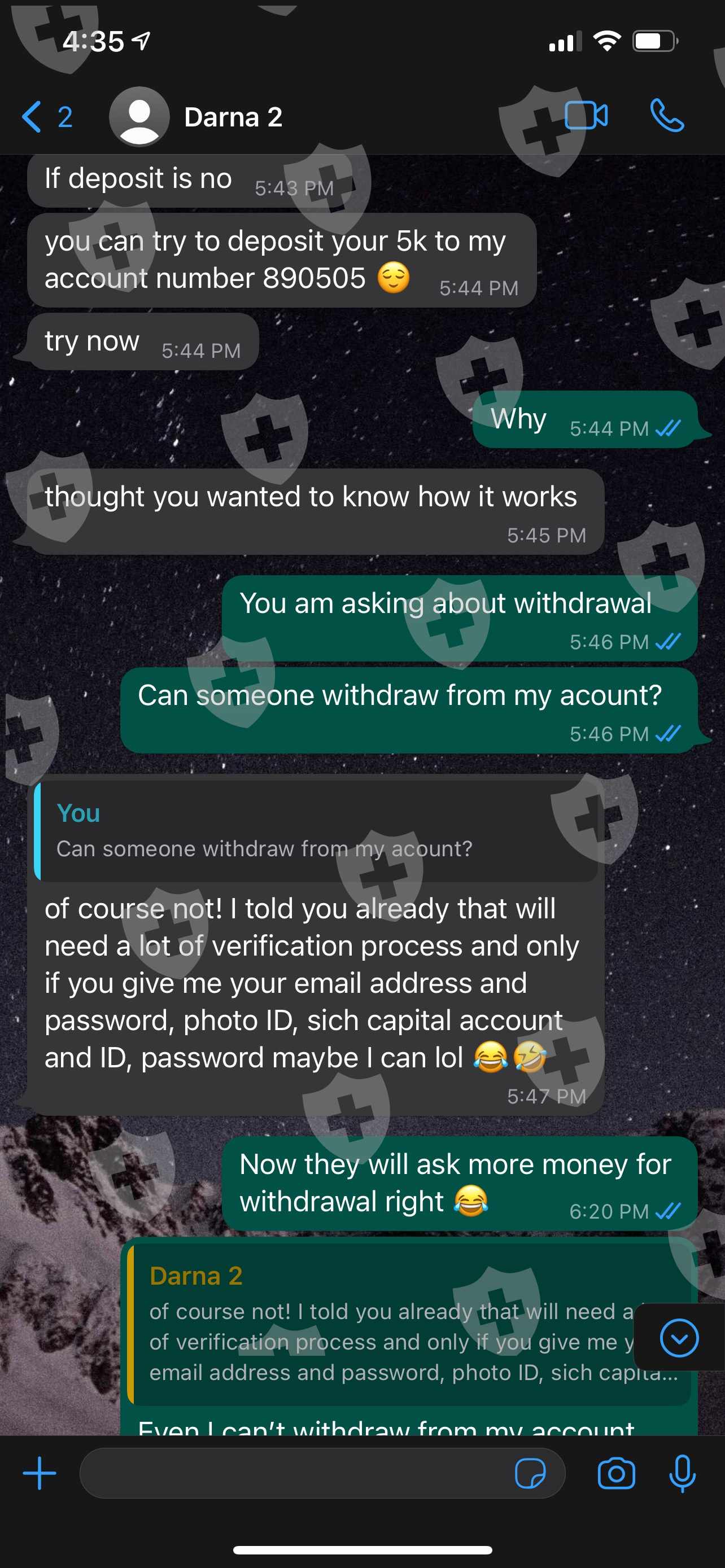 您可能在网上遇到一些亚洲女孩,他们会为了更好的未来而要求您进行交易,并且一旦您将所有资金存入平台,他们就会让您贷款或投资您拥有的所有东西,然后您就不能提款了,他们也会给你虚假的交易利润,然后他们会让你支付20/30k的手续费,然后他们会拉黑你,你将失去所有的钱