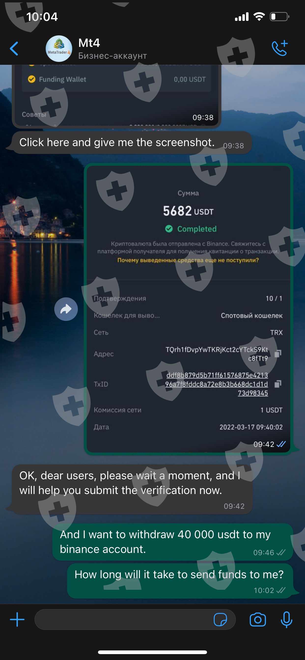 下午好!与该经纪人合作时,我发现自己同时处于两种可疑情况!一开始怀疑是通过电子钱包和USDT充的,但我冒着1000美元的小额存款开始交易,一切都很好,但我没有尝试进入,我留下了钱用于贸易发展。然后我将存款增加到 30,000 美元,以便安全交易并赚取更多,然后出现严重滑点,我损失了 38,000,我的存款被炸毁了。在此之前,我做了一个提款测试,提取了 5000 美元。之后,我充值了 14,000 美元,另一位交易员在平台内又向我转账了 67,000 美元,我继续交易,但几乎立即,当我的存款达到 98,000 时,交易员发来信说他指责我恶意交易如果我不支付总存款的 20%,我的账户将被冻结,之后我可以从账户中提取所有资金,其他交易者据称已支付并据称撤回。我没有这样的机会和愿望。一周后,SkyAm 公司给我发消息说他们已经进行了调查,由于我是他们的客户,他们准备支付 15% 的解冻我账户的佣金,之后他们承诺将所有资金提取到我的 Binance 账户.我支付了,之前已经说明是否会有额外的规则和佣金。经纪人回答说他不会并接受了付款。但我申请提款后,提款没有跟上,参考金融监管部门要求追加5%提款,我支付了总额的5%,说明什么都做.经纪人证实了这一点。之后他们说要半年后提现,否则我需要再付给他们2000,以便紧急提现。他们用押金勒索钱财。即使他们把他们赚到的钱的一部分给了你,他们很可能会保留其余的。我开始与这个经纪人合作,在社交网络的一个女孩的推荐下,她可能是个骗子!!!