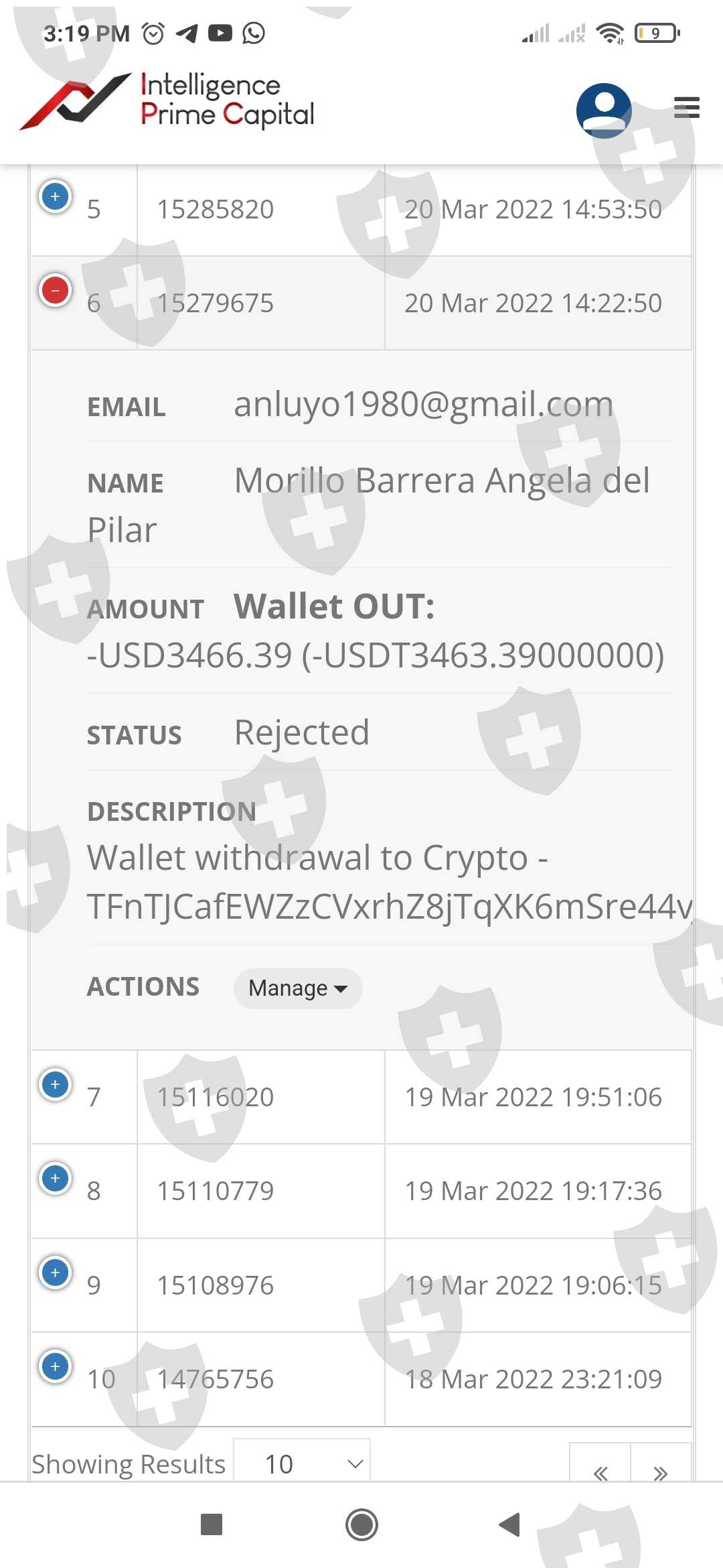Tengo pruebas y soportes de la falta de seriedad de Intelligence Prime Capital y expongo a esta farsa de empresa para que lo comunidad de Traders y persona que somos inversora no caigan en este esquema PONZI.