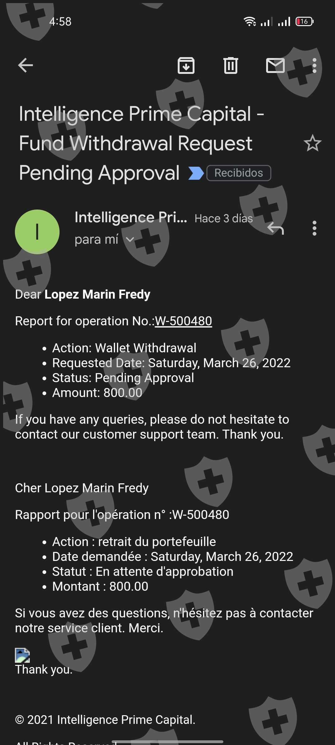 今天,3月28日,我收到一个国家不承认的消息,我必须在3月27日之前申请全额提款,本质上我要求提款我尚未收到的800美元,账户中还剩下202.84美元我无法申请提款,因为我无法进入该页面。附上请求的图片和帐户中的余额...非常感谢!